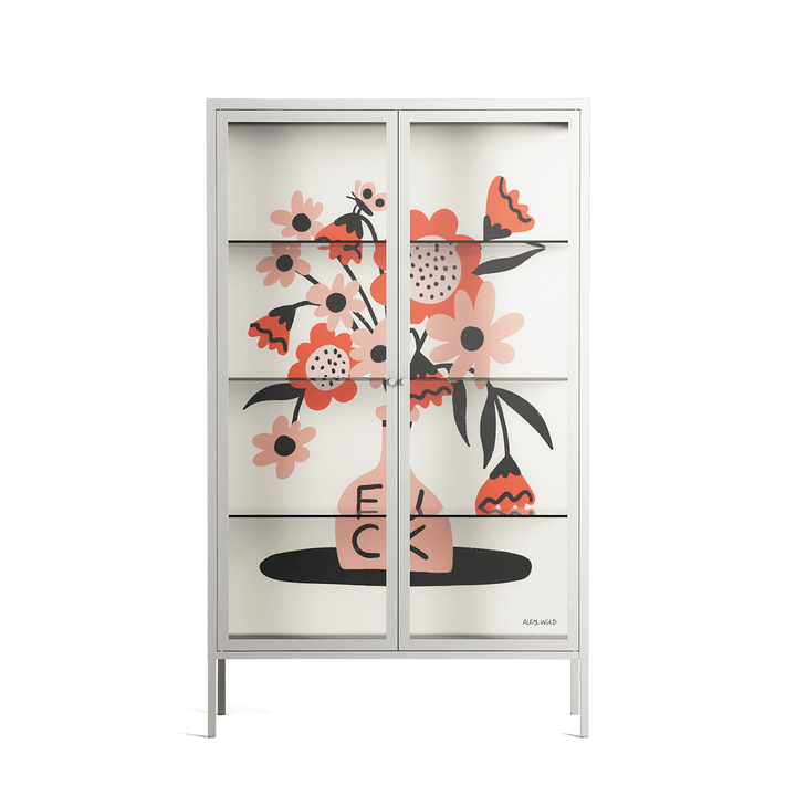Vitrine pairs artworks by artists, designers, and creatives from around the world with a frame that elevates and displays them in everyday space. The cabinet is built from precision-cut metal with a powder-coated finish — resistant to wear and crafted for stability — making it ideal for both office and home spaces.