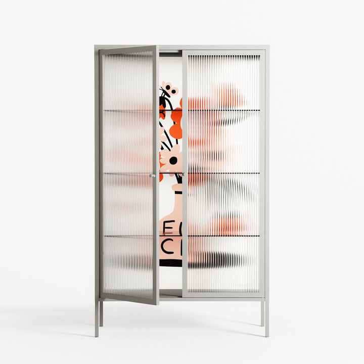 Vitrine pairs artworks by artists, designers, and creatives from around the world with a frame that elevates and displays them in everyday space. The cabinet is built from precision-cut metal with a powder-coated finish — resistant to wear and crafted for stability — making it ideal for both office and home spaces.