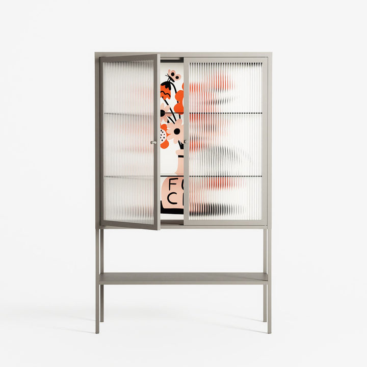 Vitrine pairs artworks by artists, designers, and creatives from around the world with a frame that elevates and displays them in everyday space. The cabinet is built from precision-cut metal with a powder-coated finish — resistant to wear and crafted for stability — making it ideal for both office and home spaces.