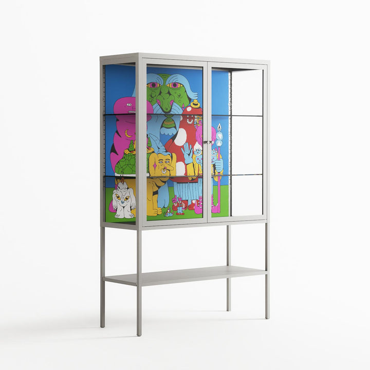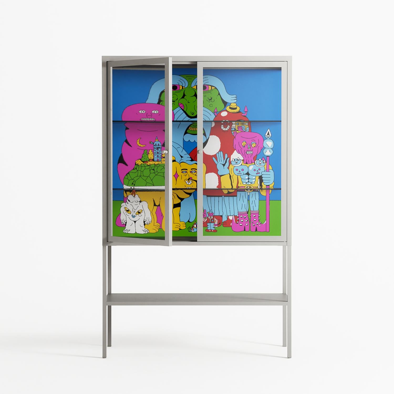 Vitrine pairs artworks by artists, designers, and creatives from around the world with a frame that elevates and displays them in everyday space. The cabinet is built from precision-cut metal with a powder-coated finish — resistant to wear and crafted for stability — making it ideal for both office and home spaces.