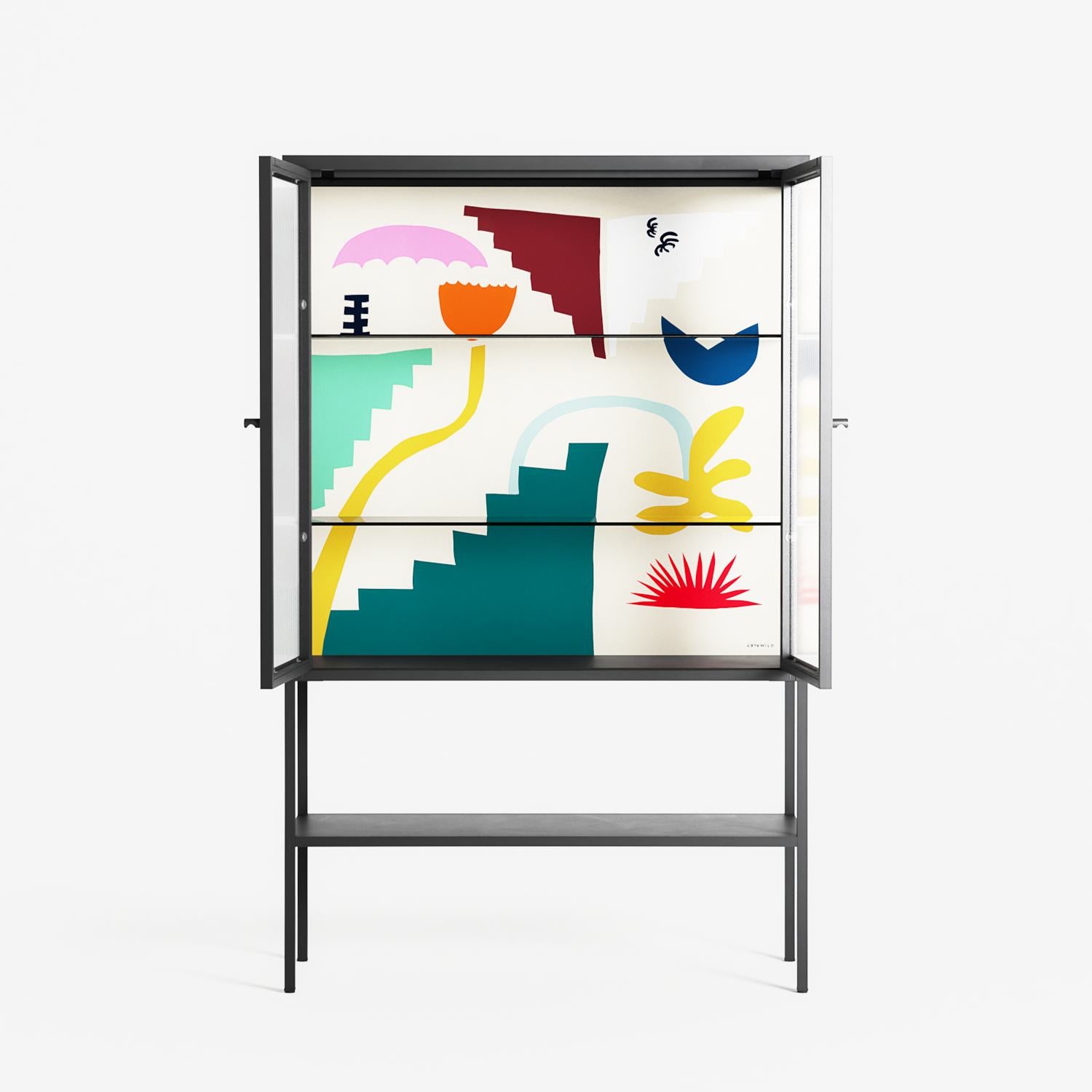 Vitrine pairs artworks by artists, designers, and creatives from around the world with a frame that elevates and displays them in everyday space. The cabinet is built from precision-cut metal with a powder-coated finish — resistant to wear and crafted for stability — making it ideal for both office and home spaces.