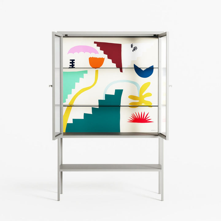Vitrine pairs artworks by artists, designers, and creatives from around the world with a frame that elevates and displays them in everyday space. The cabinet is built from precision-cut metal with a powder-coated finish — resistant to wear and crafted for stability — making it ideal for both office and home spaces.