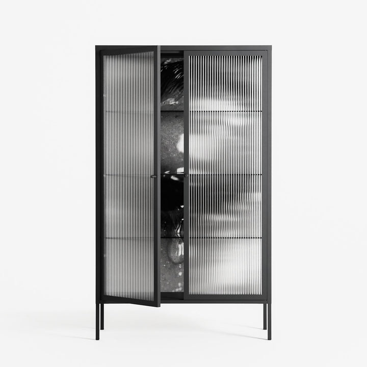 Designed to arrive flat-packed, Vitrine makes assembly straightforward and stress-free. Each component is engineered for a precise fit, allowing you to set it up quickly and easily. Adjustable glass shelves offer complete flexibility, giving you the freedom to compose and recompose your display at will.