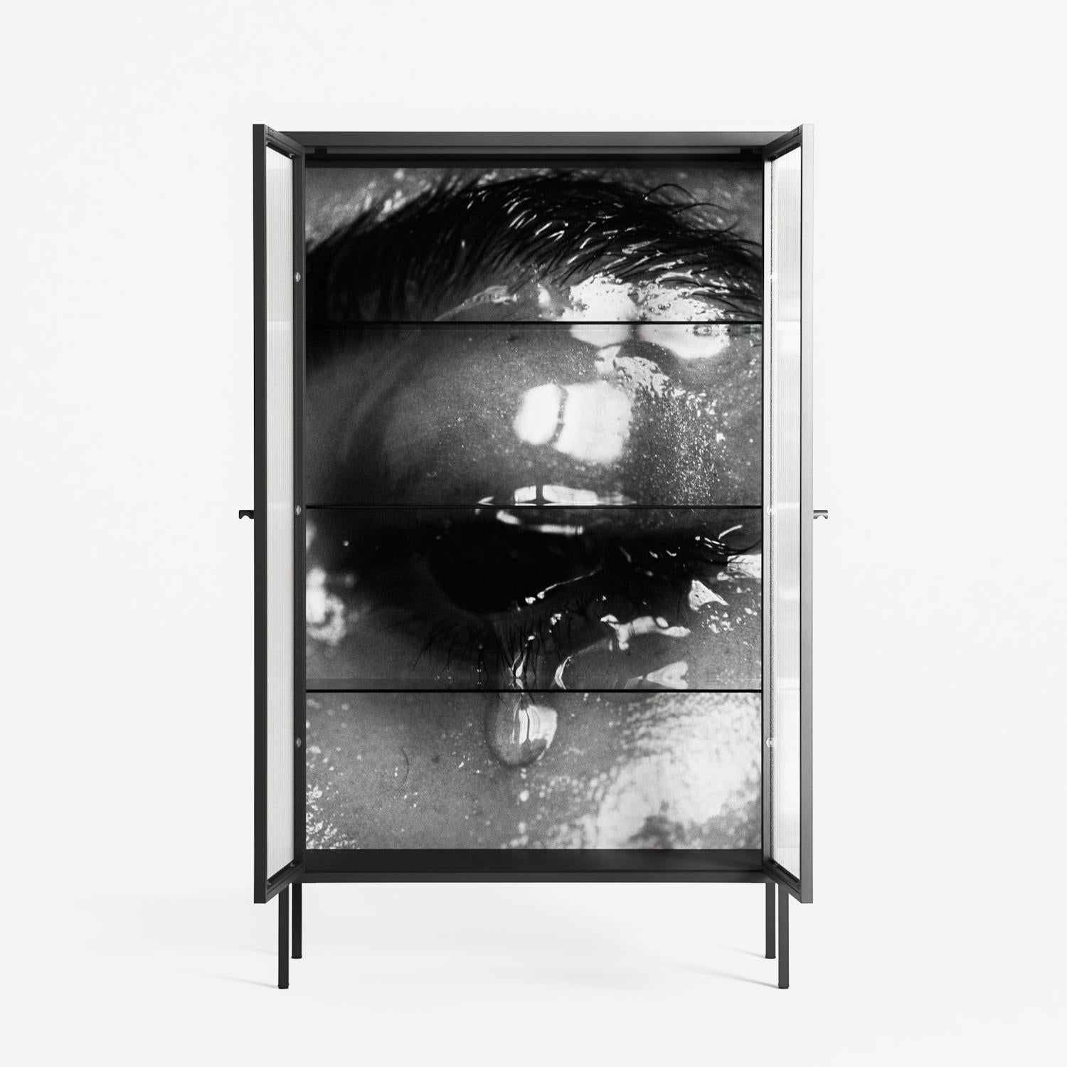 Vitrine pairs artworks by artists, designers, and creatives from around the world with a frame that elevates and displays them in everyday space. The cabinet is built from precision-cut metal with a powder-coated finish — resistant to wear and crafted for stability — making it ideal for both office and home spaces.