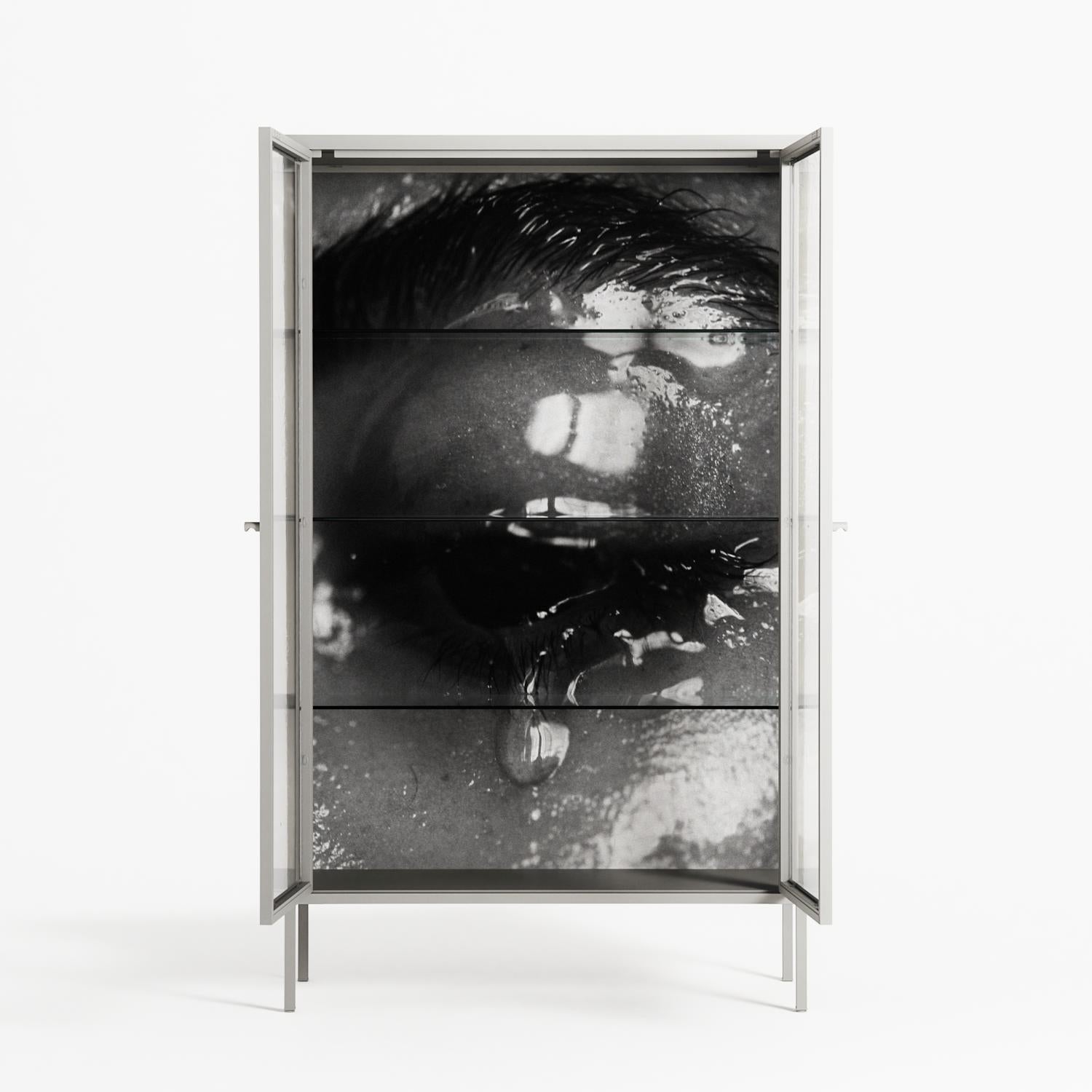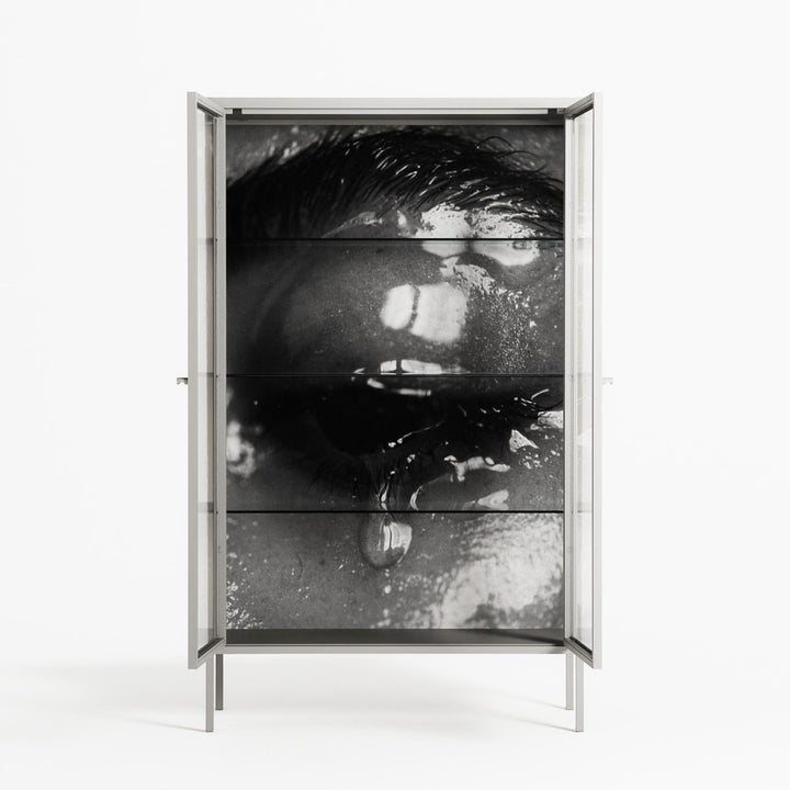 Vitrine pairs artworks by artists, designers, and creatives from around the world with a frame that elevates and displays them in everyday space. The cabinet is built from precision-cut metal with a powder-coated finish — resistant to wear and crafted for stability — making it ideal for both office and home spaces.