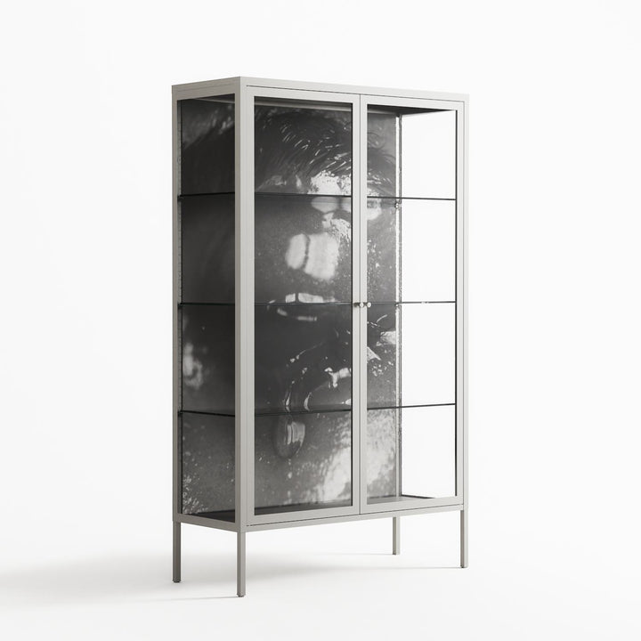 Designed to arrive flat-packed, Vitrine makes assembly straightforward and stress-free. Each component is engineered for a precise fit, allowing you to set it up quickly and easily. Adjustable glass shelves offer complete flexibility, giving you the freedom to compose and recompose your display at will.