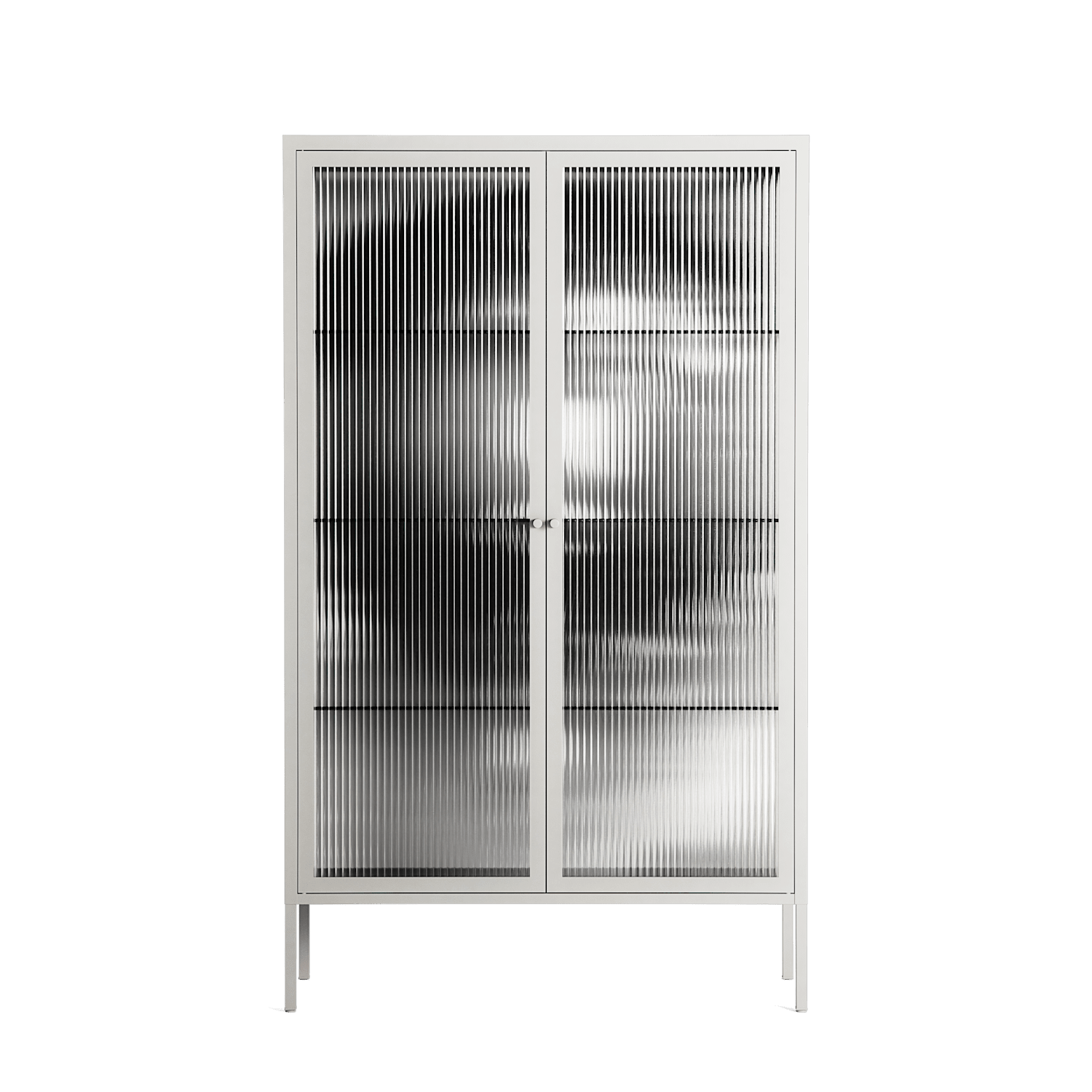 Gel by Nadia Ryder, displayed within the Vitrine Cabinet behind Reeded glass. Finished in the colour Chalk, the cabinet becomes a frame for the artwork and the objects within.