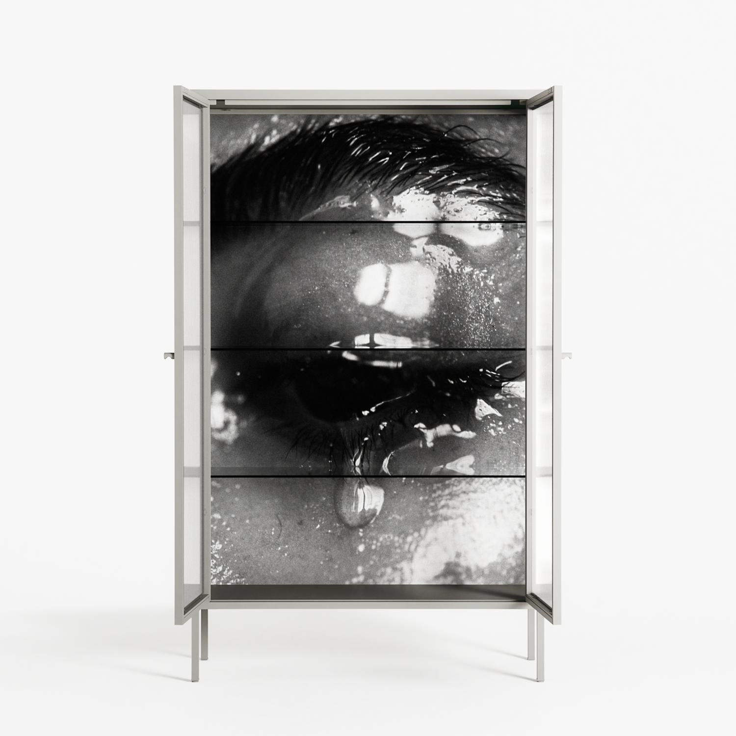 Vitrine pairs artworks by artists, designers, and creatives from around the world with a frame that elevates and displays them in everyday space. The cabinet is built from precision-cut metal with a powder-coated finish — resistant to wear and crafted for stability — making it ideal for both office and home spaces.