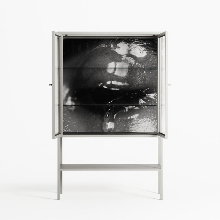 Vitrine pairs artworks by artists, designers, and creatives from around the world with a frame that elevates and displays them in everyday space. The cabinet is built from precision-cut metal with a powder-coated finish — resistant to wear and crafted for stability — making it ideal for both office and home spaces.
