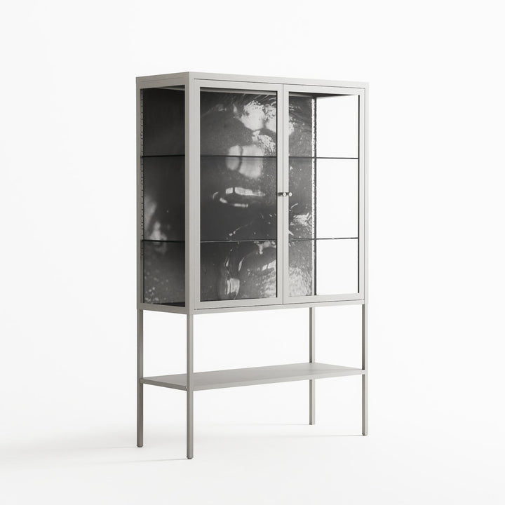 Designed to arrive flat-packed, Vitrine makes assembly straightforward and stress-free. Each component is engineered for a precise fit, allowing you to set it up quickly and easily. Adjustable glass shelves offer complete flexibility, giving you the freedom to compose and recompose your display at will.