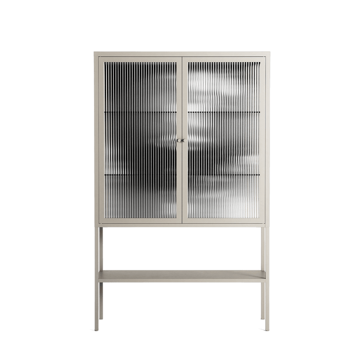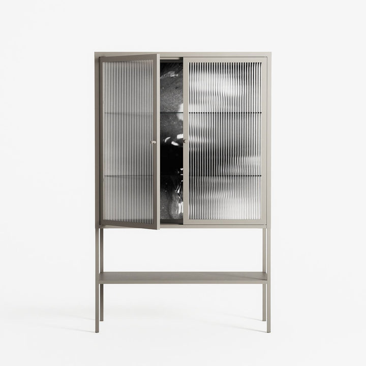 Gel by Nadia Ryder, displayed within the Vitrine Loft Cabinet behind Reeded glass. Finished in the colour Pebble, the cabinet becomes a frame for the artwork and the objects within.