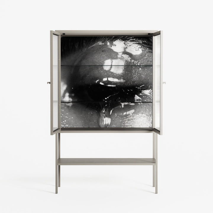 Vitrine pairs artworks by artists, designers, and creatives from around the world with a frame that elevates and displays them in everyday space. The cabinet is built from precision-cut metal with a powder-coated finish — resistant to wear and crafted for stability — making it ideal for both office and home spaces.