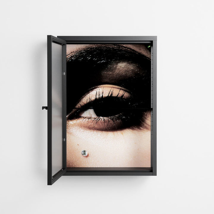 Vitrine pairs artworks by artists, designers, and creatives from around the world with a frame that elevates and displays them in everyday space. The cabinet is built from precision-cut metal with a powder-coated finish — resistant to wear and crafted for stability — making it ideal for both office and home spaces.
