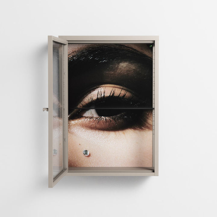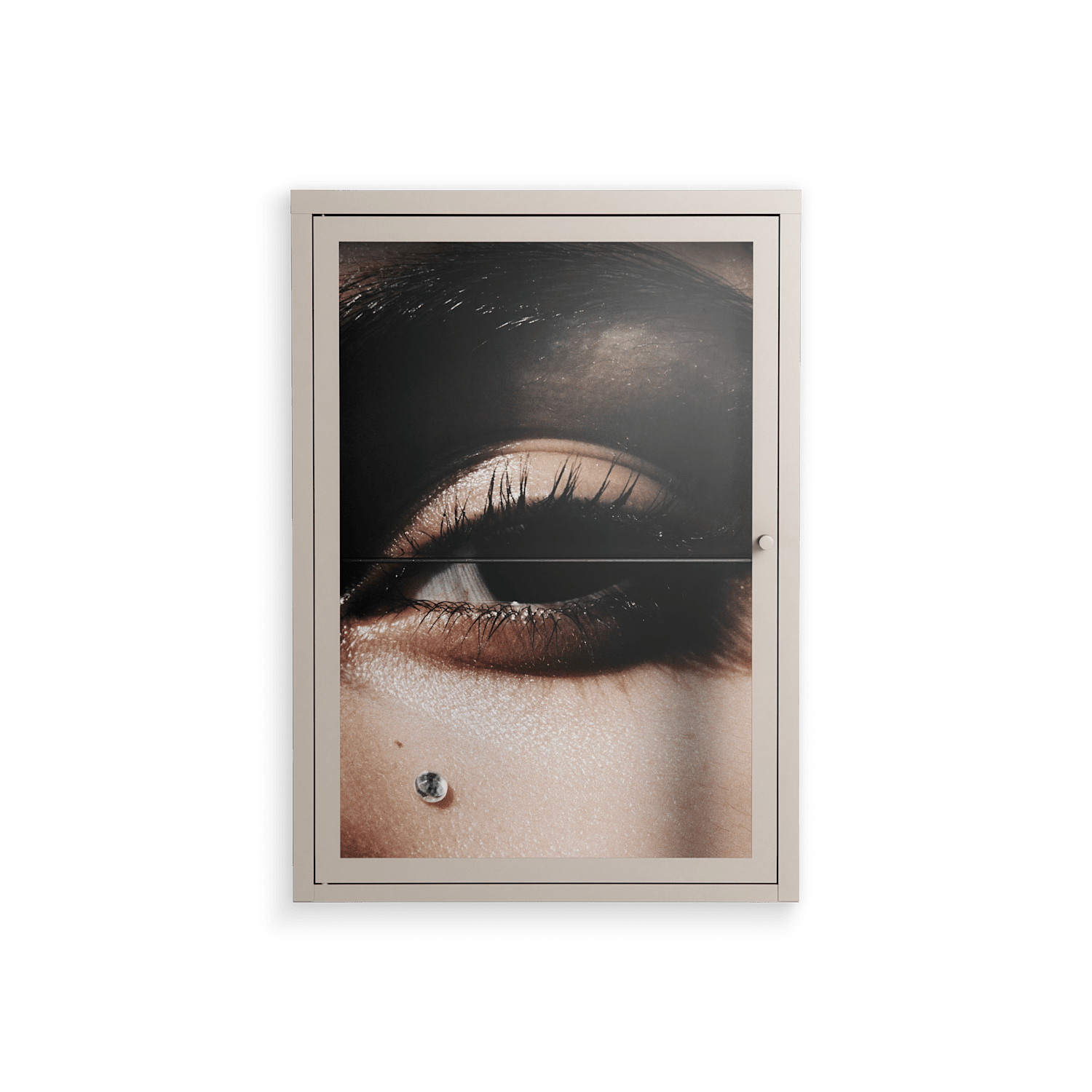 Vitrine pairs artworks by artists, designers, and creatives from around the world with a frame that elevates and displays them in everyday space. The cabinet is built from precision-cut metal with a powder-coated finish — resistant to wear and crafted for stability — making it ideal for both office and home spaces.