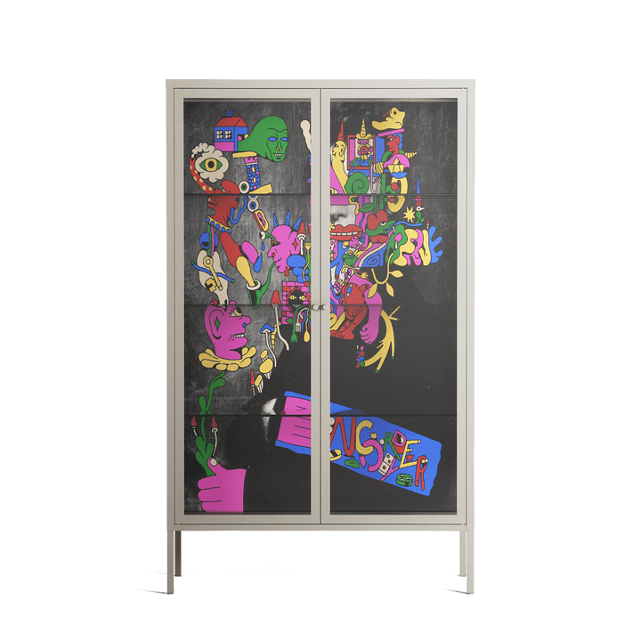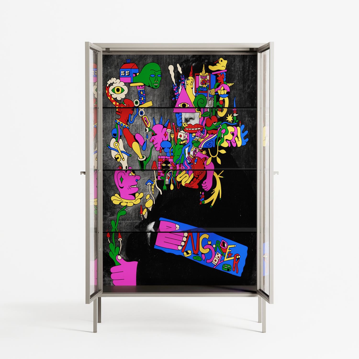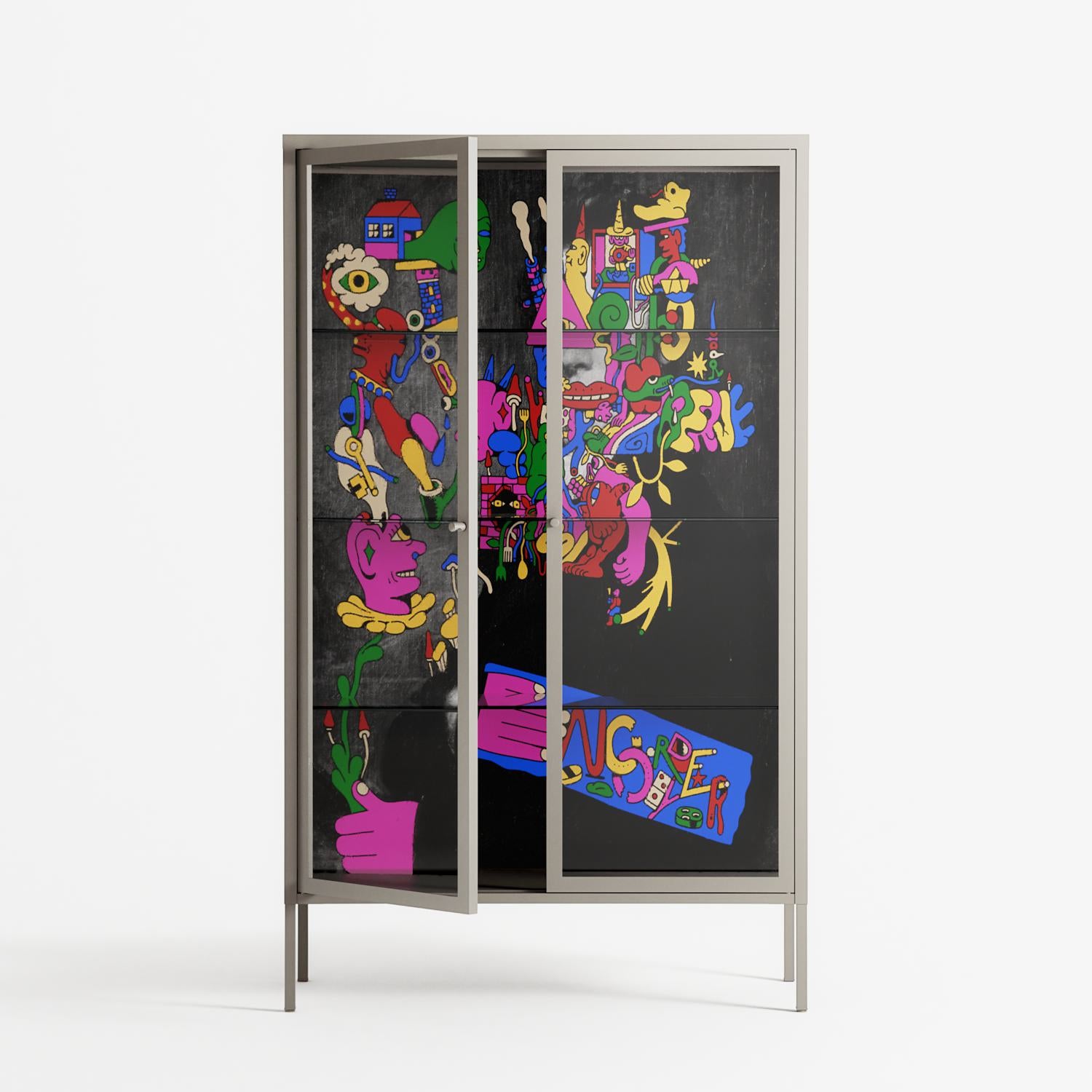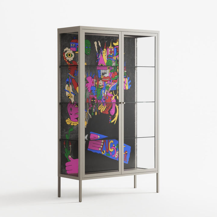 Vitrine pairs artworks by artists, designers, and creatives from around the world with a frame that elevates and displays them in everyday space. The cabinet is built from precision-cut metal with a powder-coated finish — resistant to wear and crafted for stability — making it ideal for both office and home spaces.