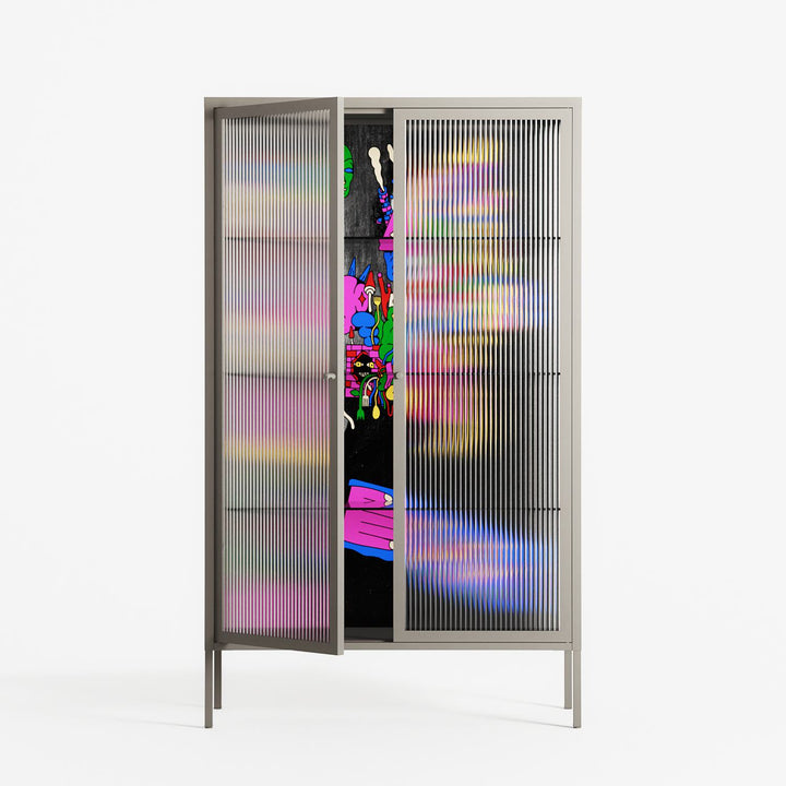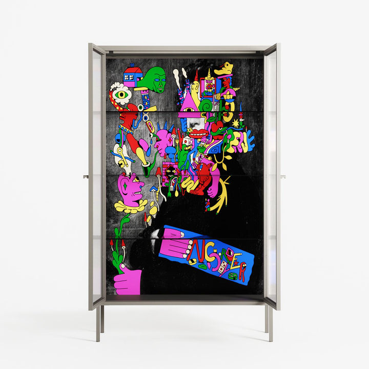 Vitrine pairs artworks by artists, designers, and creatives from around the world with a frame that elevates and displays them in everyday space. The cabinet is built from precision-cut metal with a powder-coated finish — resistant to wear and crafted for stability — making it ideal for both office and home spaces.