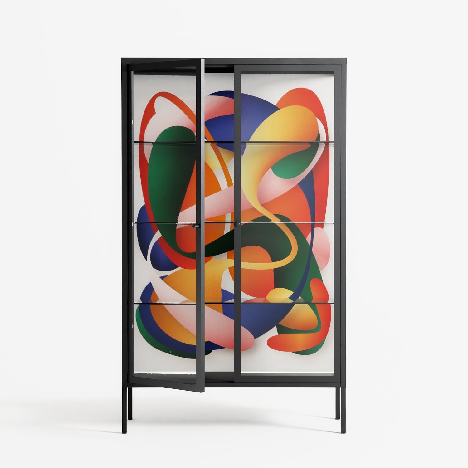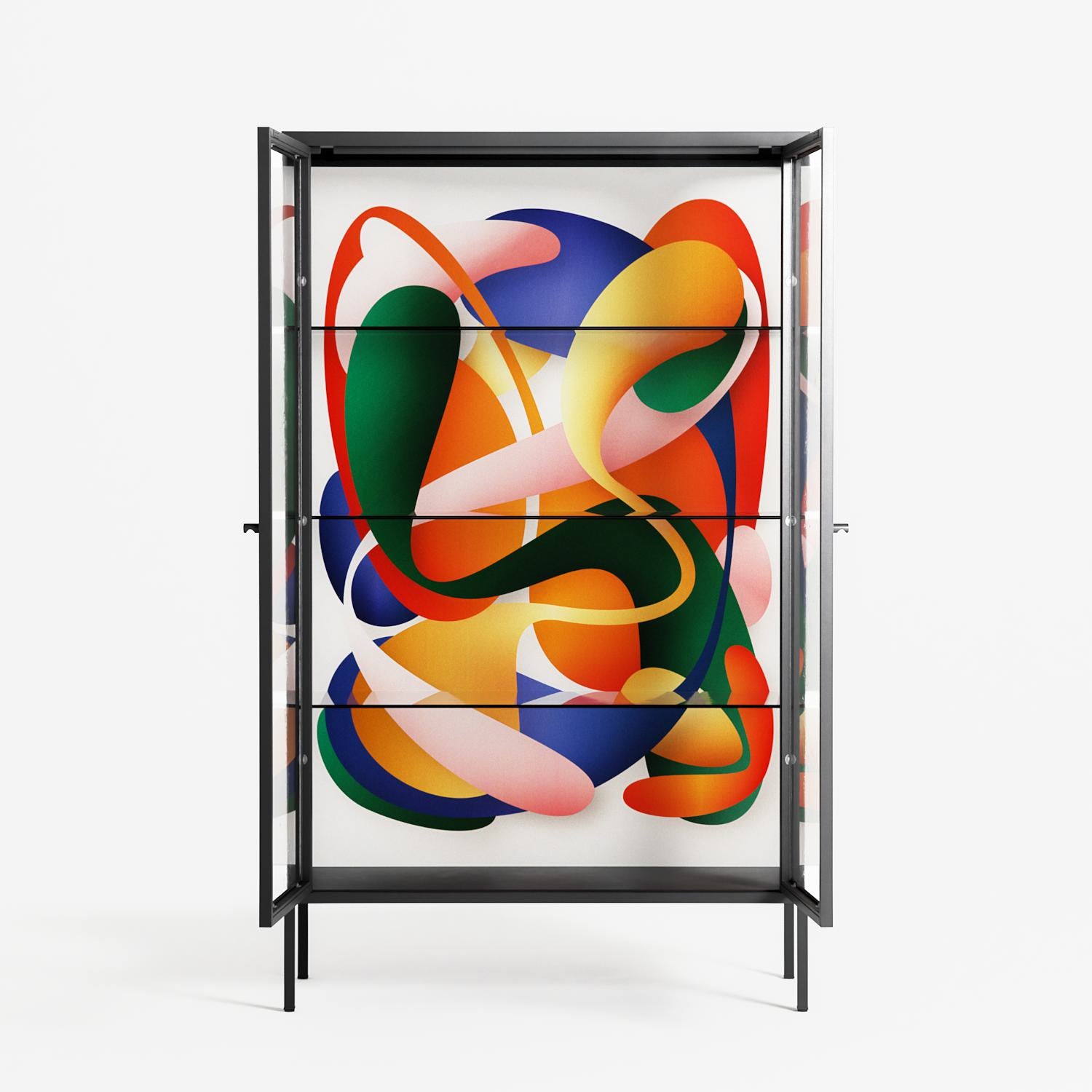 Vitrine pairs artworks by artists, designers, and creatives from around the world with a frame that elevates and displays them in everyday space. The cabinet is built from precision-cut metal with a powder-coated finish — resistant to wear and crafted for stability — making it ideal for both office and home spaces.