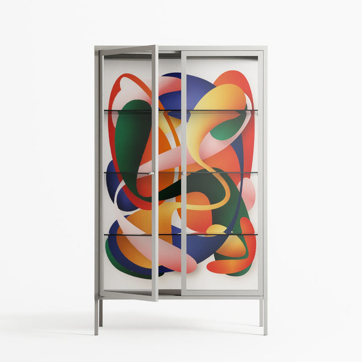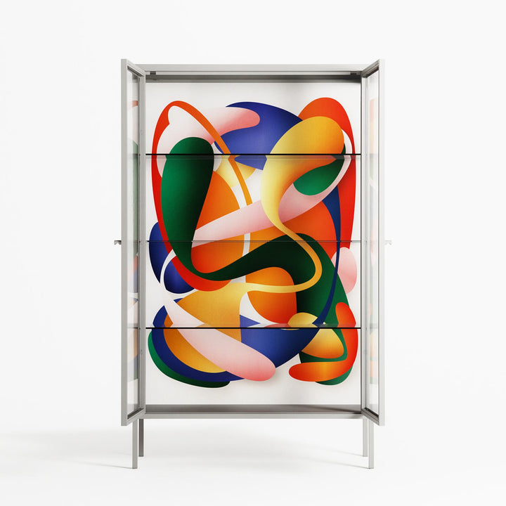 Vitrine pairs artworks by artists, designers, and creatives from around the world with a frame that elevates and displays them in everyday space. The cabinet is built from precision-cut metal with a powder-coated finish — resistant to wear and crafted for stability — making it ideal for both office and home spaces.