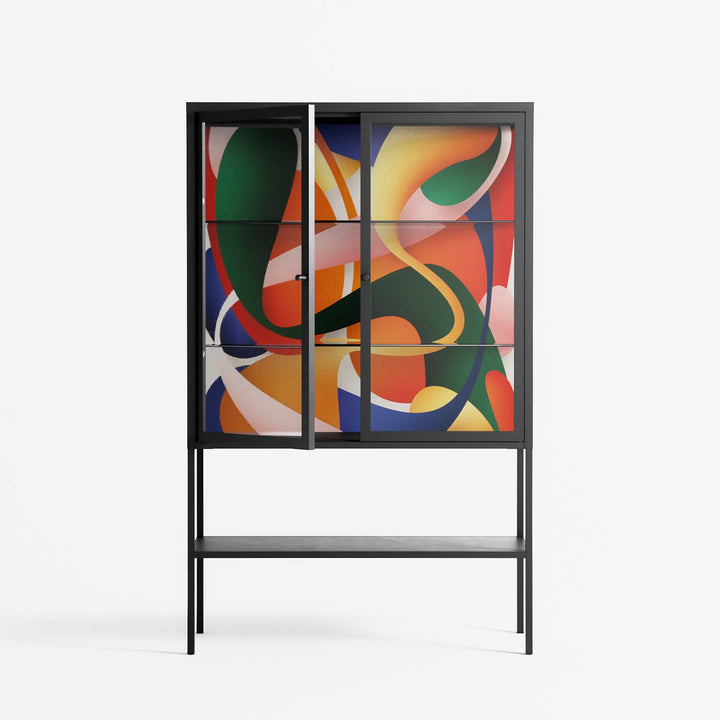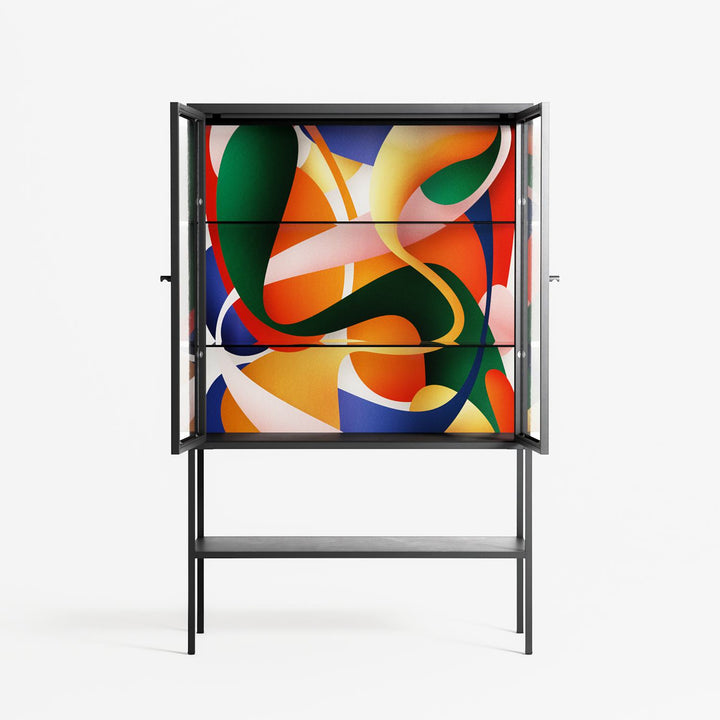 Vitrine pairs artworks by artists, designers, and creatives from around the world with a frame that elevates and displays them in everyday space. The cabinet is built from precision-cut metal with a powder-coated finish — resistant to wear and crafted for stability — making it ideal for both office and home spaces.
