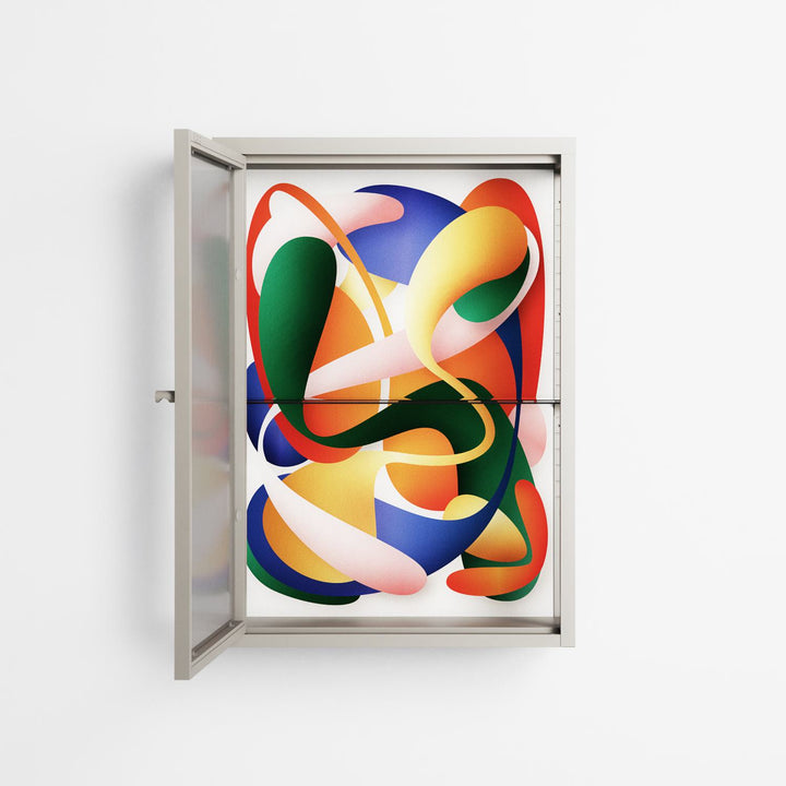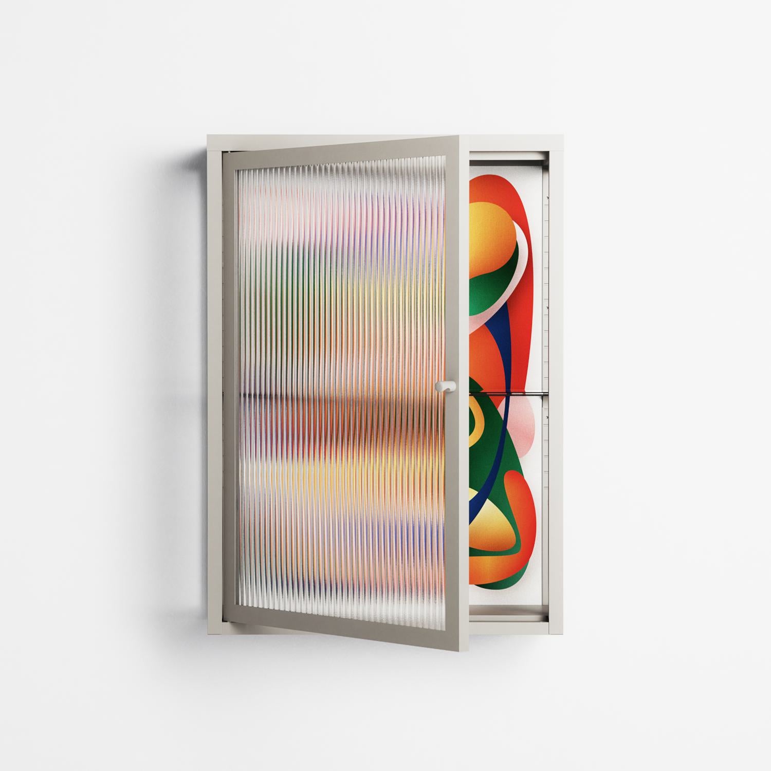 Vitrine pairs artworks by artists, designers, and creatives from around the world with a frame that elevates and displays them in everyday space. The cabinet is built from precision-cut metal with a powder-coated finish — resistant to wear and crafted for stability — making it ideal for both office and home spaces.