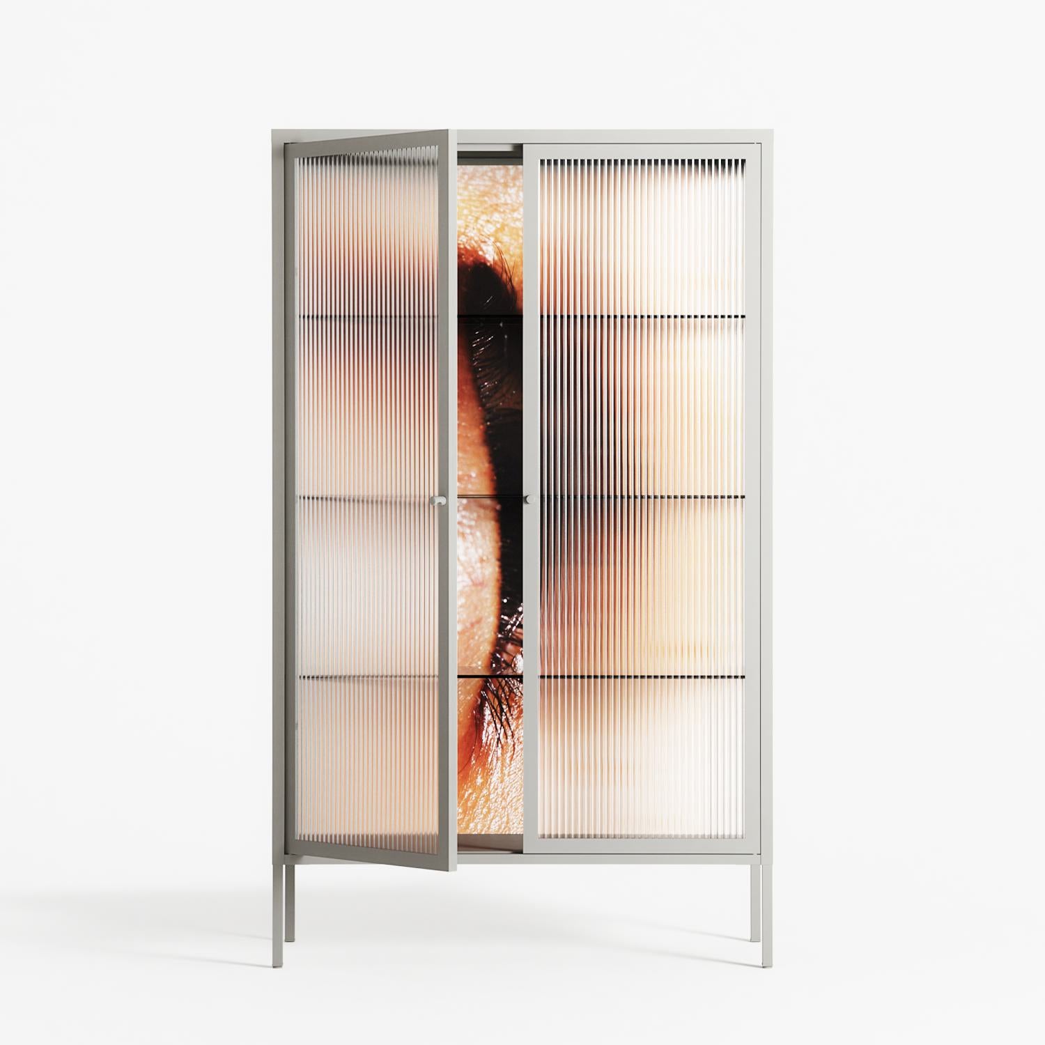Vitrine pairs artworks by artists, designers, and creatives from around the world with a frame that elevates and displays them in everyday space. The cabinet is built from precision-cut metal with a powder-coated finish — resistant to wear and crafted for stability — making it ideal for both office and home spaces.
