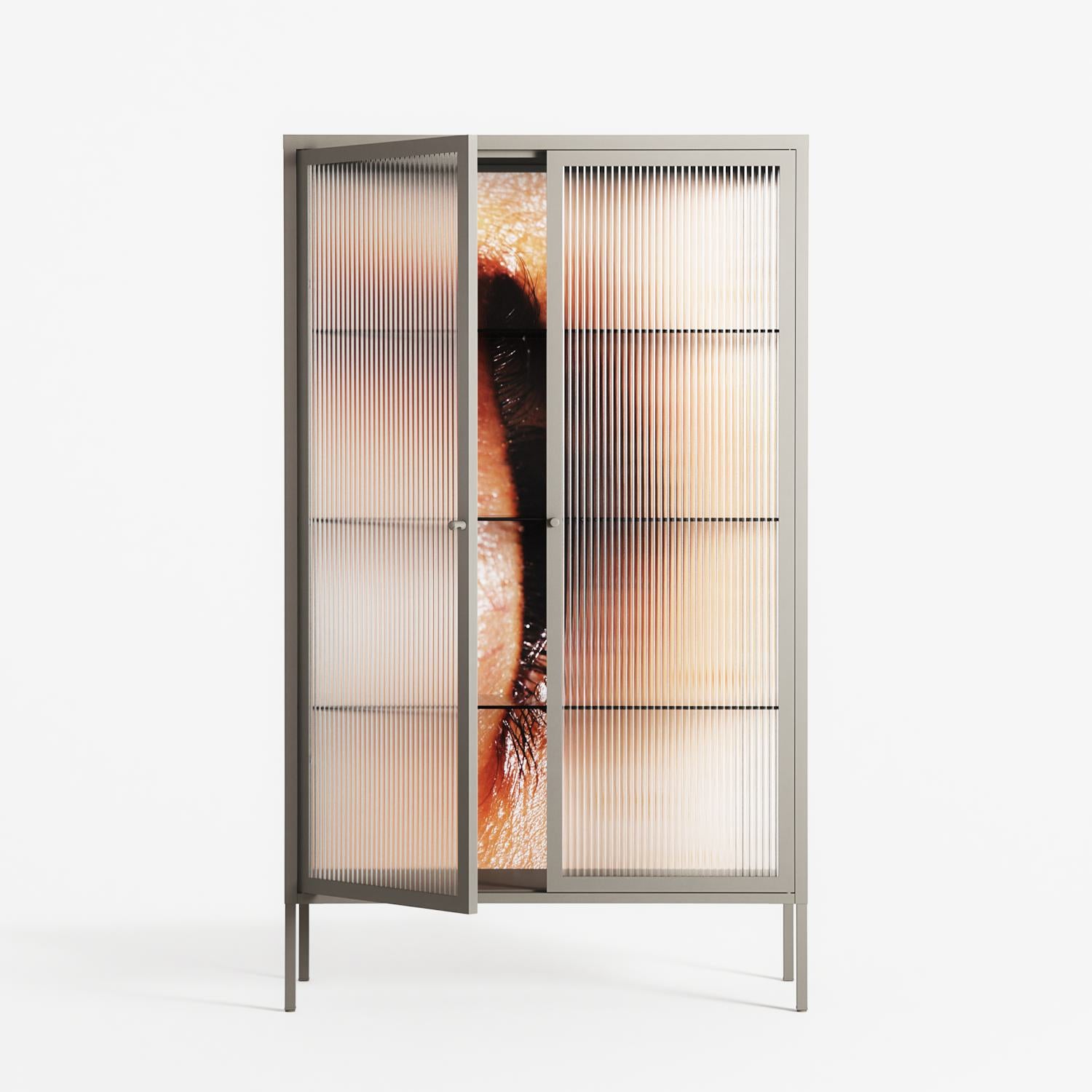 Vitrine pairs artworks by artists, designers, and creatives from around the world with a frame that elevates and displays them in everyday space. The cabinet is built from precision-cut metal with a powder-coated finish — resistant to wear and crafted for stability — making it ideal for both office and home spaces.