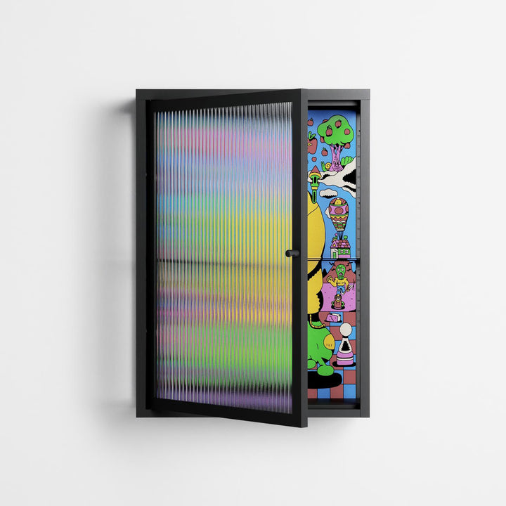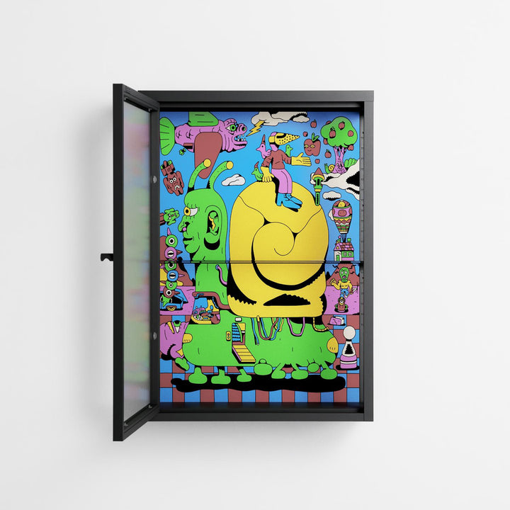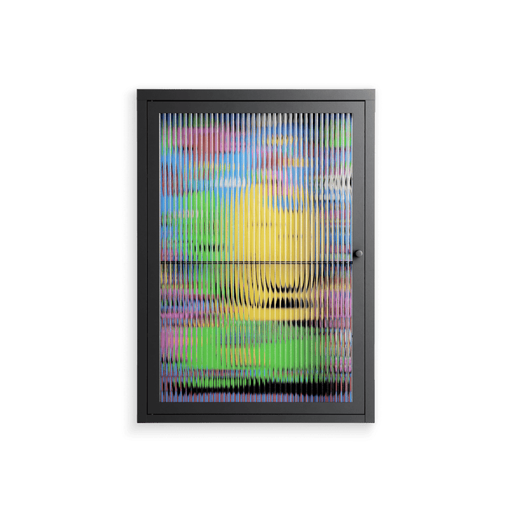 Vitrine pairs artworks by artists, designers, and creatives from around the world with a frame that elevates and displays them in everyday space. The cabinet is built from precision-cut metal with a powder-coated finish — resistant to wear and crafted for stability — making it ideal for both office and home spaces.