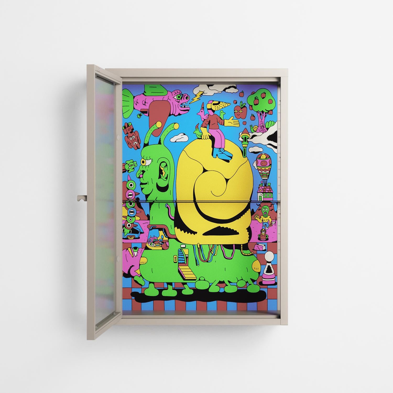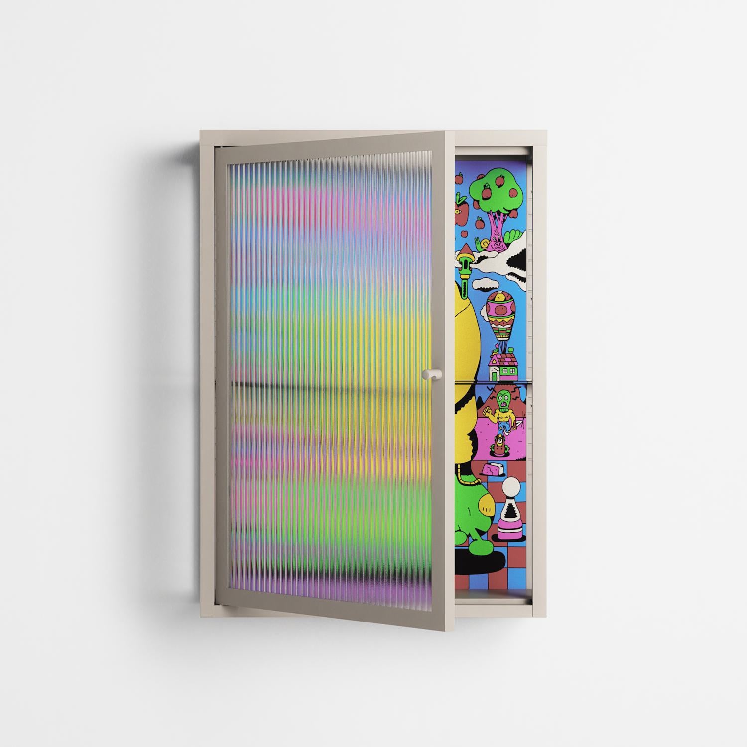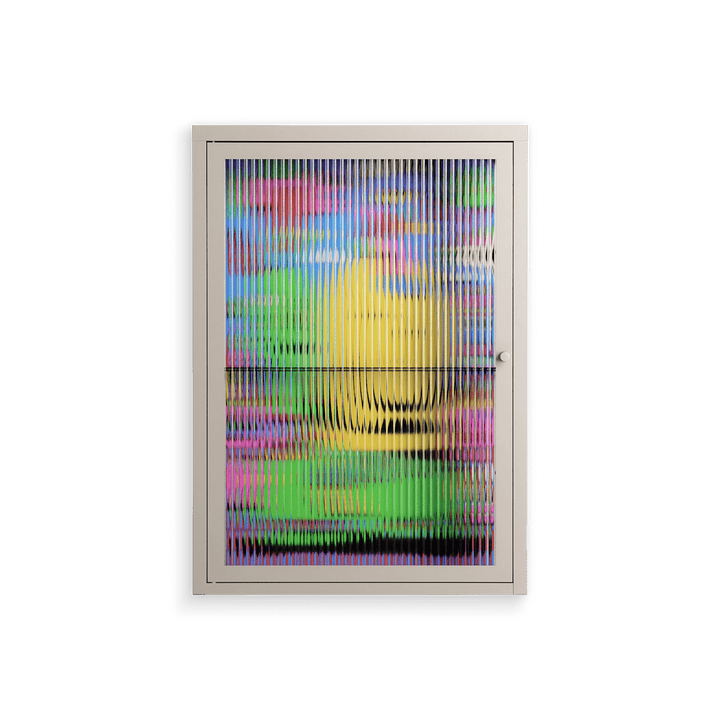 Vitrine pairs artworks by artists, designers, and creatives from around the world with a frame that elevates and displays them in everyday space. The cabinet is built from precision-cut metal with a powder-coated finish — resistant to wear and crafted for stability — making it ideal for both office and home spaces.