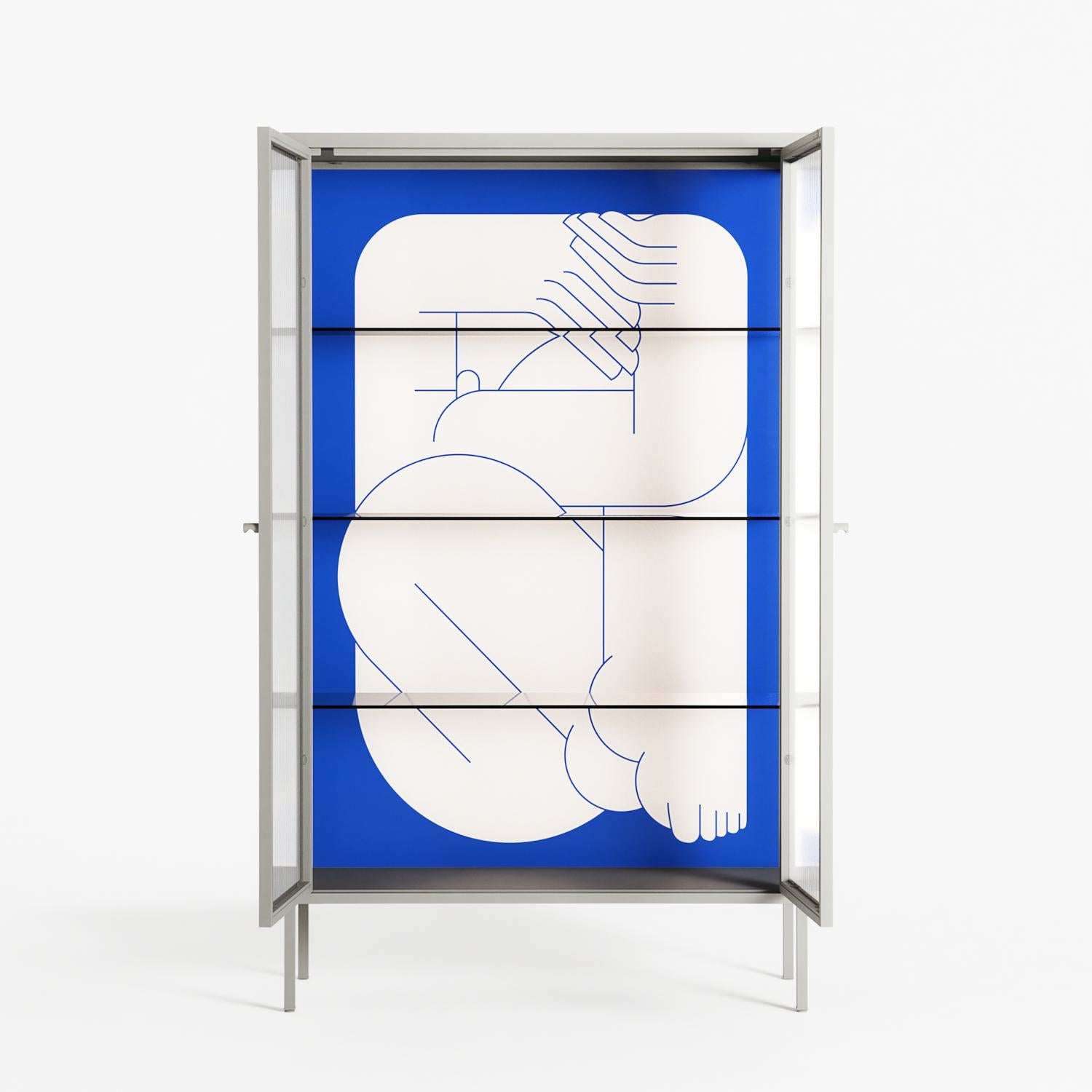 Vitrine pairs artworks by artists, designers, and creatives from around the world with a frame that elevates and displays them in everyday space. The cabinet is built from precision-cut metal with a powder-coated finish — resistant to wear and crafted for stability — making it ideal for both office and home spaces.