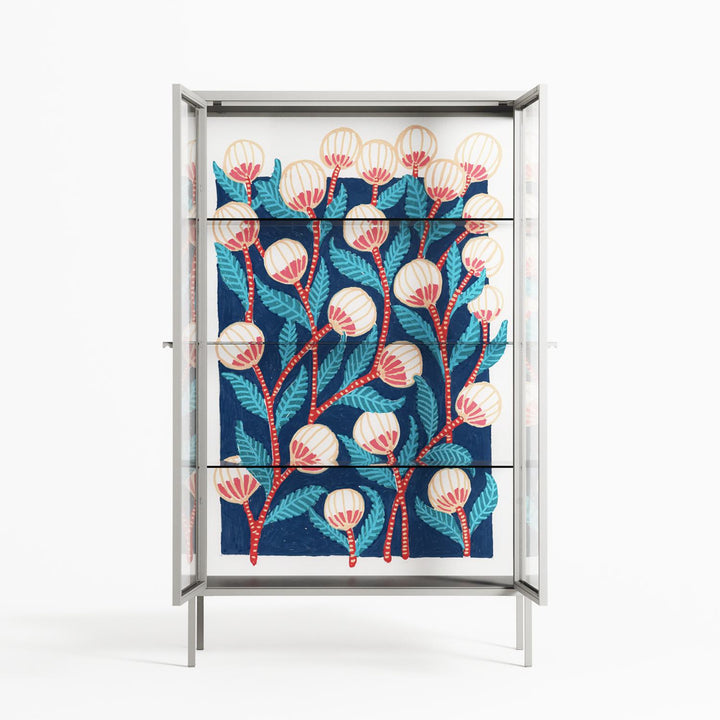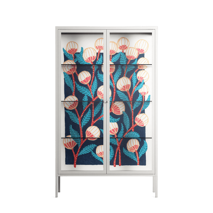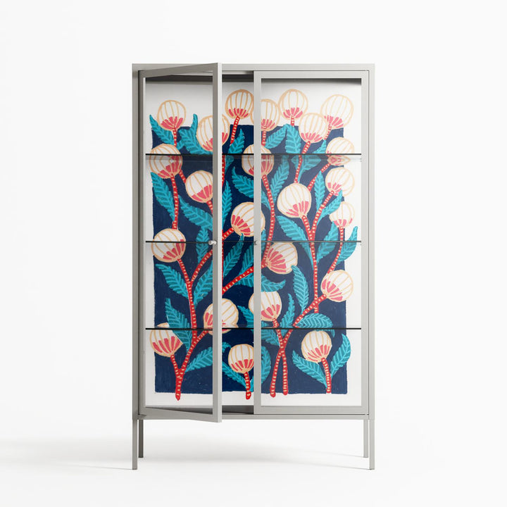 Vitrine pairs artworks by artists, designers, and creatives from around the world with a frame that elevates and displays them in everyday space. The cabinet is built from precision-cut metal with a powder-coated finish — resistant to wear and crafted for stability — making it ideal for both office and home spaces.