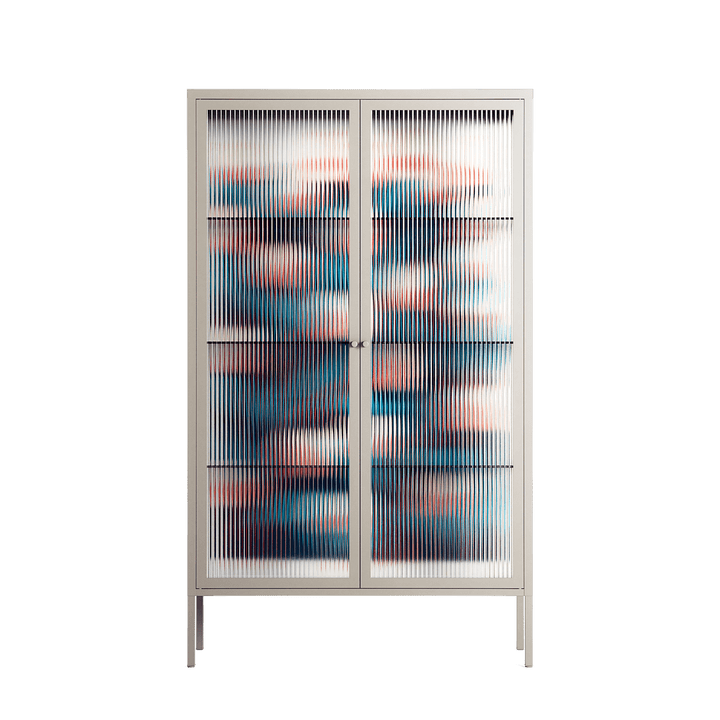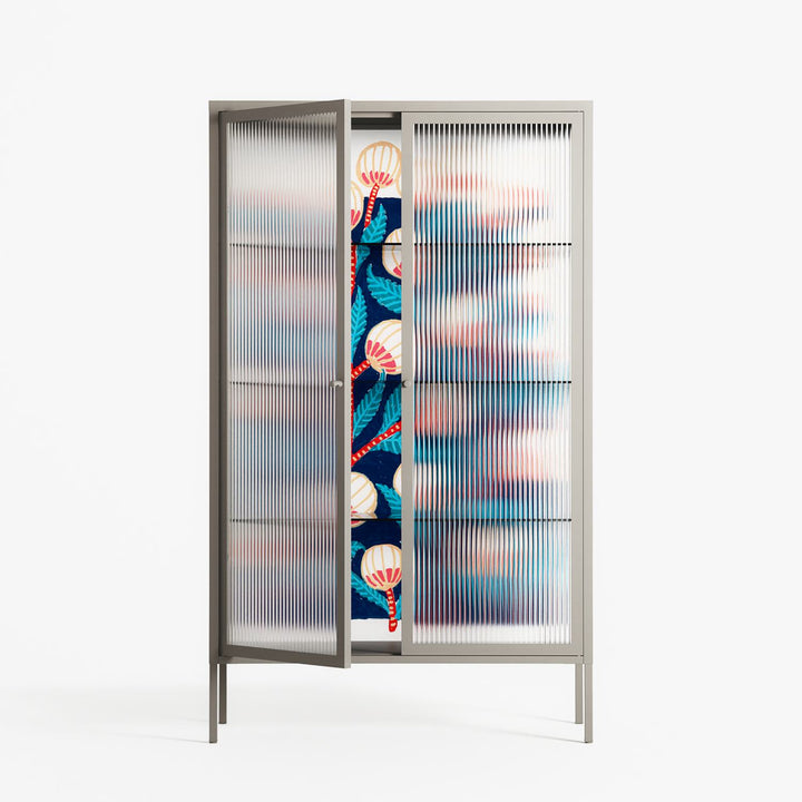 Gooseberries by Katie O’Shea, displayed within the Vitrine Cabinet behind Reeded glass. Finished in the colour Pebble, the cabinet becomes a frame for the artwork and the objects within.