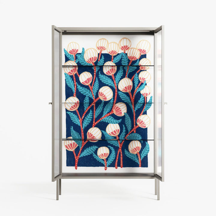 Vitrine pairs artworks by artists, designers, and creatives from around the world with a frame that elevates and displays them in everyday space. The cabinet is built from precision-cut metal with a powder-coated finish — resistant to wear and crafted for stability — making it ideal for both office and home spaces.