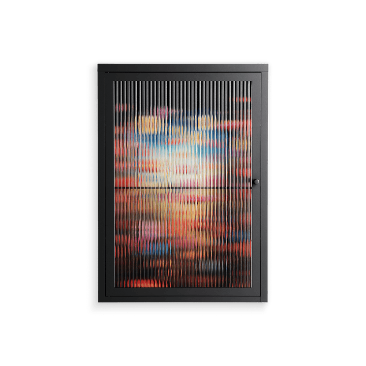 Vitrine pairs artworks by artists, designers, and creatives from around the world with a frame that elevates and displays them in everyday space. The cabinet is built from precision-cut metal with a powder-coated finish — resistant to wear and crafted for stability — making it ideal for both office and home spaces.