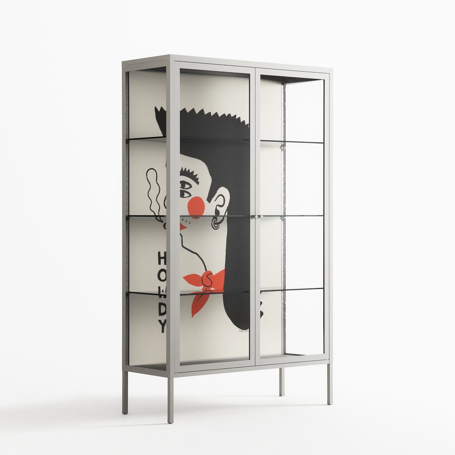 Vitrine pairs artworks by artists, designers, and creatives from around the world with a frame that elevates and displays them in everyday space. The cabinet is built from precision-cut metal with a powder-coated finish — resistant to wear and crafted for stability — making it ideal for both office and home spaces.