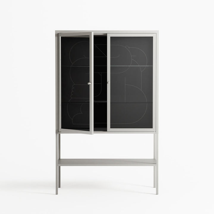 Vitrine pairs artworks by artists, designers, and creatives from around the world with a frame that elevates and displays them in everyday space. The cabinet is built from precision-cut metal with a powder-coated finish — resistant to wear and crafted for stability — making it ideal for both office and home spaces.