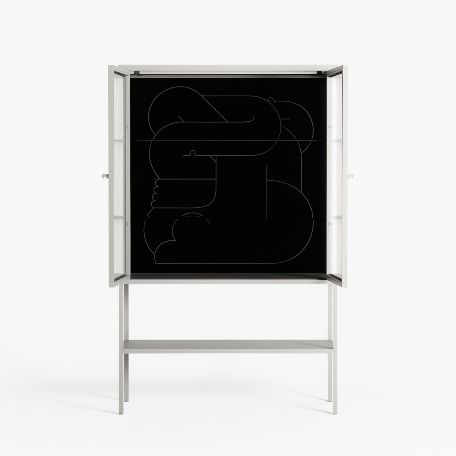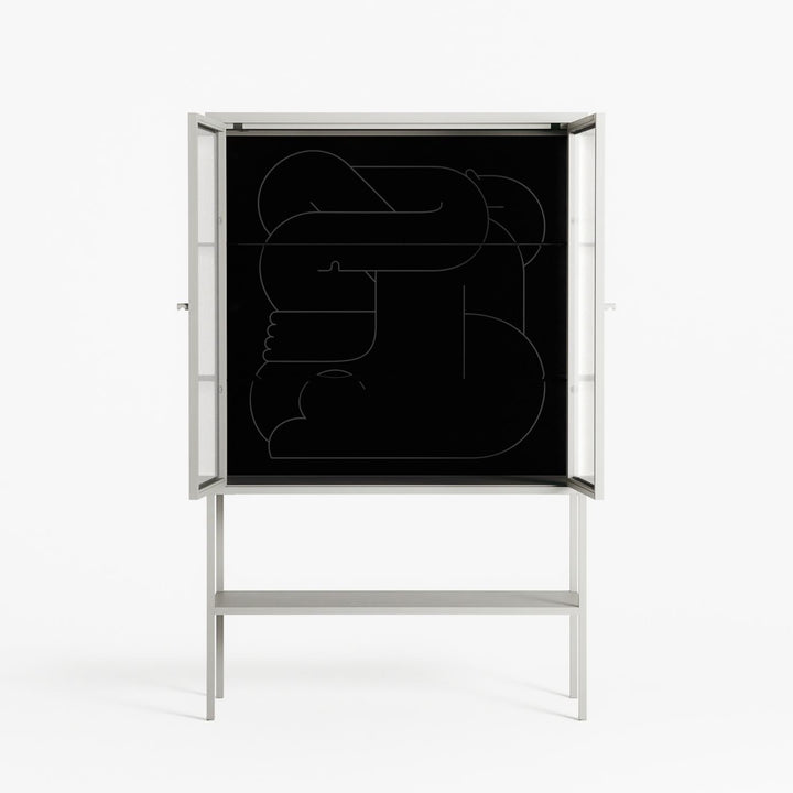 Vitrine pairs artworks by artists, designers, and creatives from around the world with a frame that elevates and displays them in everyday space. The cabinet is built from precision-cut metal with a powder-coated finish — resistant to wear and crafted for stability — making it ideal for both office and home spaces.