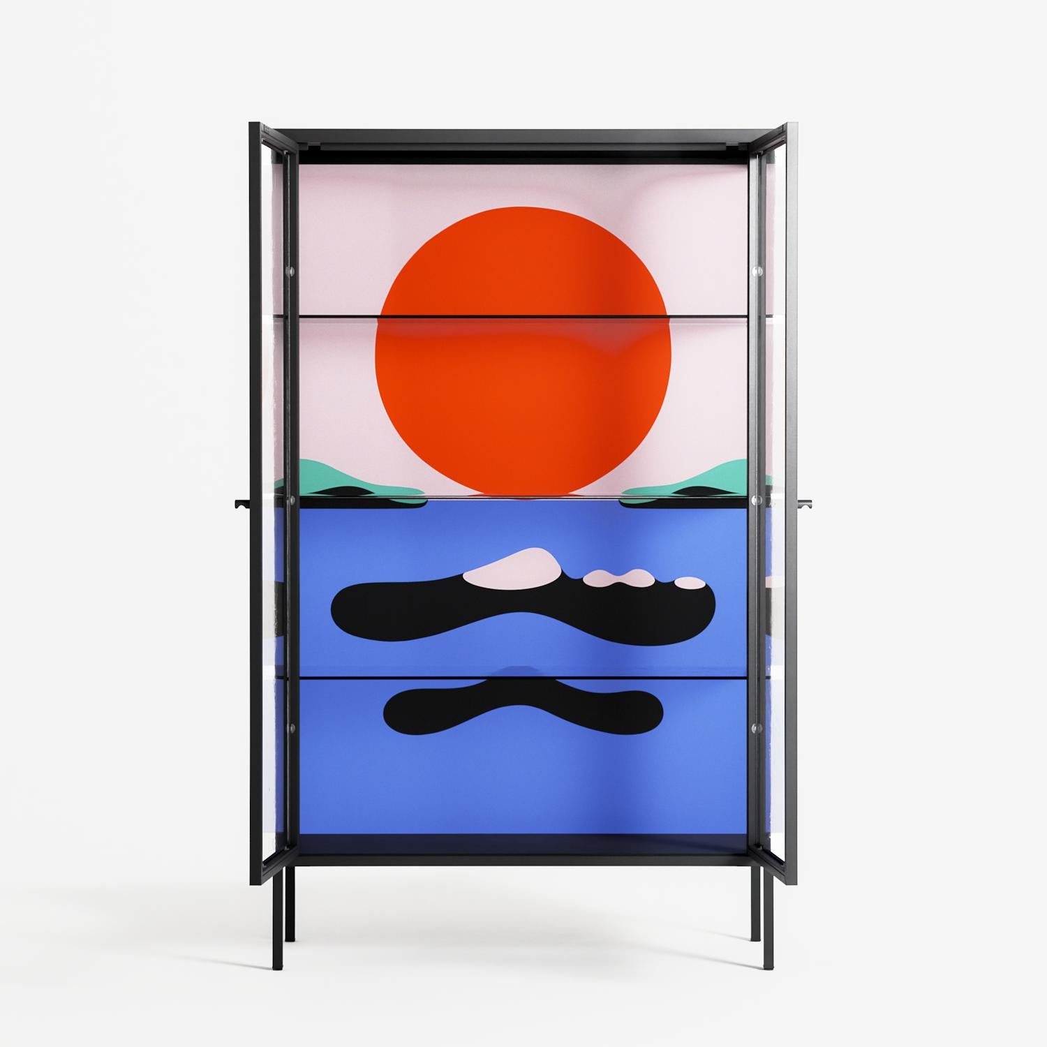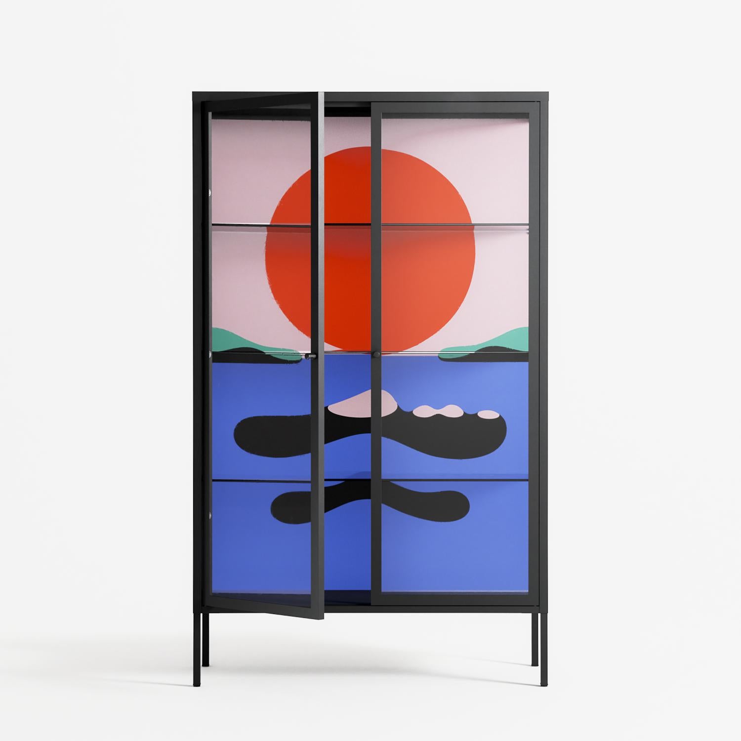 Vitrine pairs artworks by artists, designers, and creatives from around the world with a frame that elevates and displays them in everyday space. The cabinet is built from precision-cut metal with a powder-coated finish — resistant to wear and crafted for stability — making it ideal for both office and home spaces.