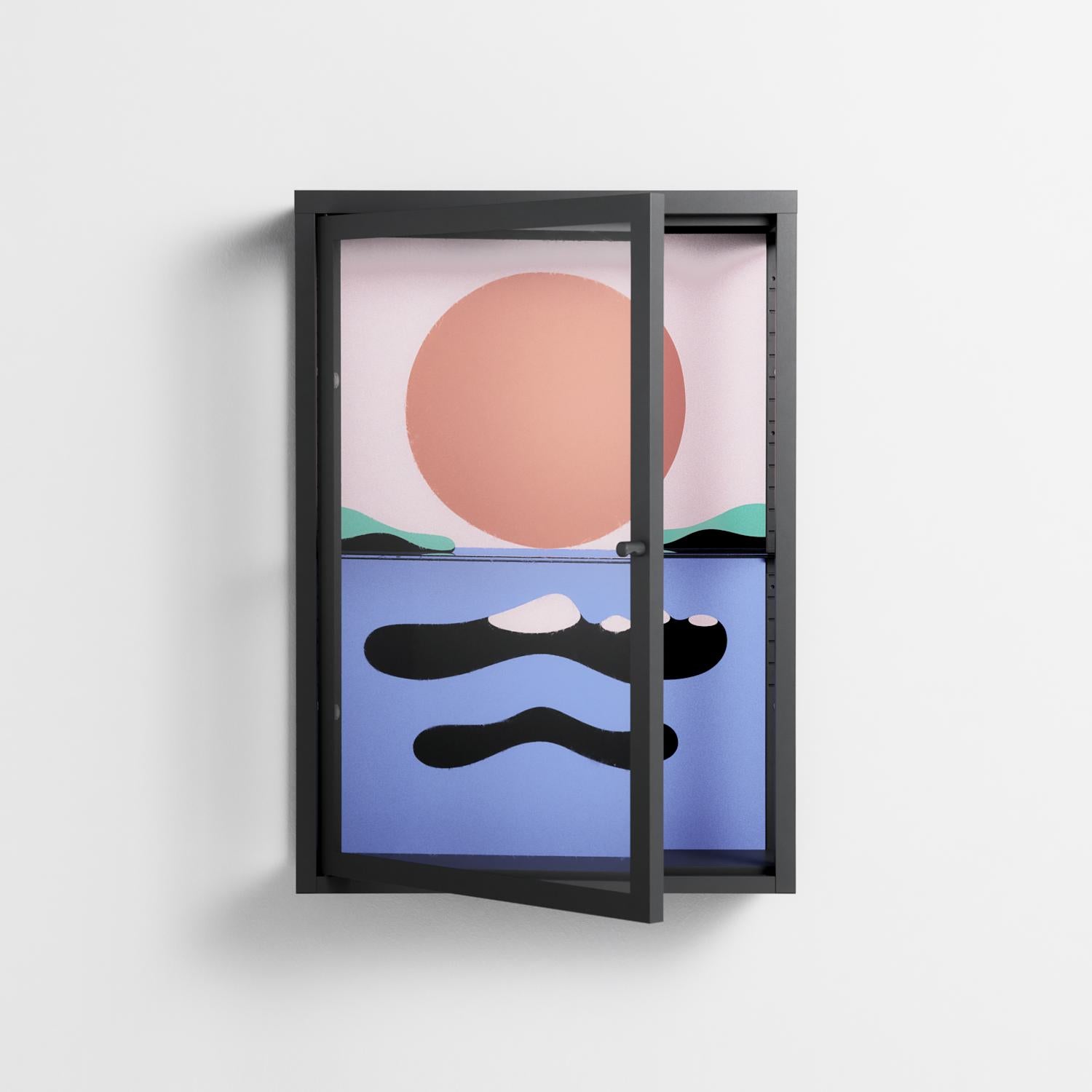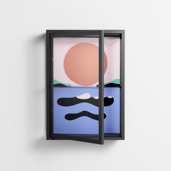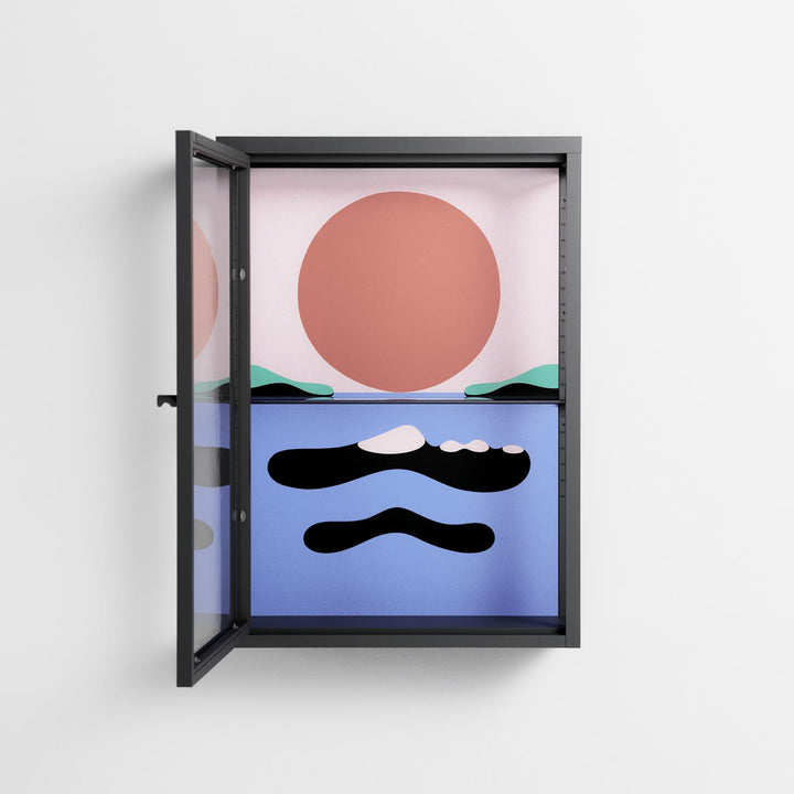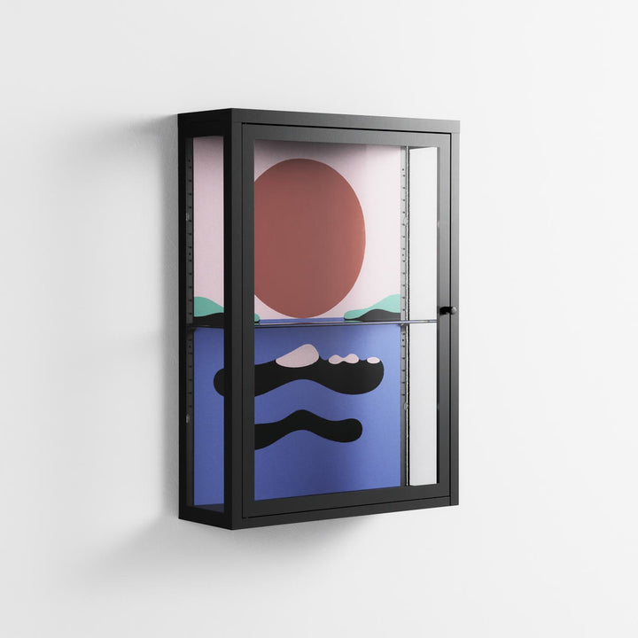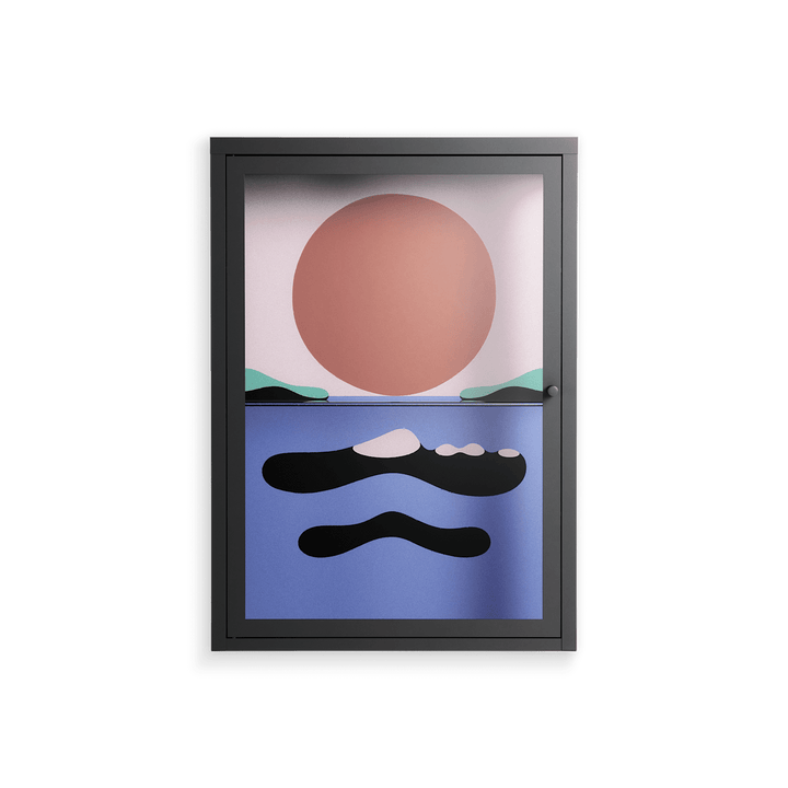 Vitrine pairs artworks by artists, designers, and creatives from around the world with a frame that elevates and displays them in everyday space. The cabinet is built from precision-cut metal with a powder-coated finish — resistant to wear and crafted for stability — making it ideal for both office and home spaces.