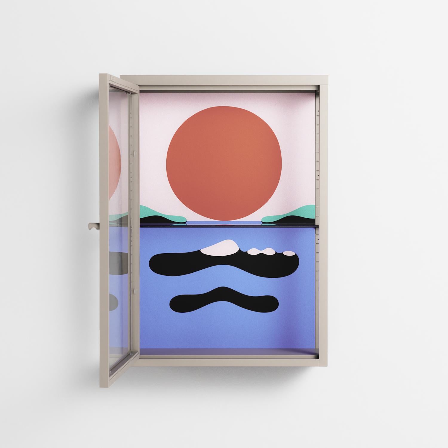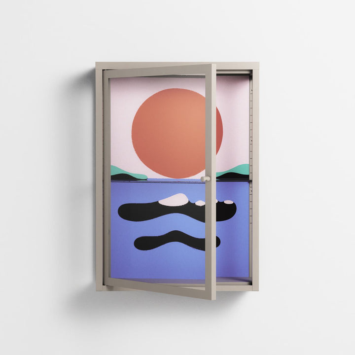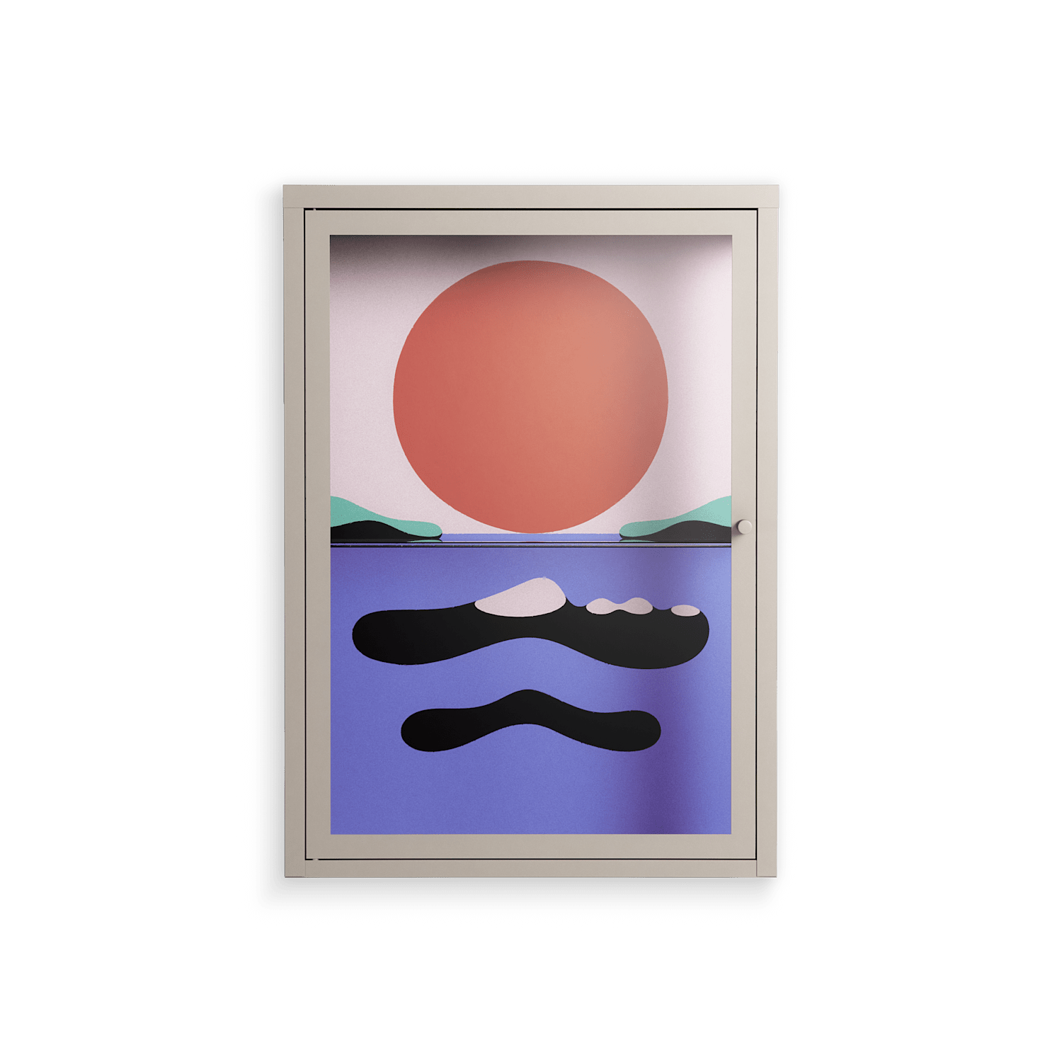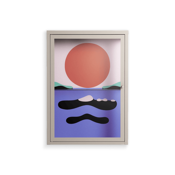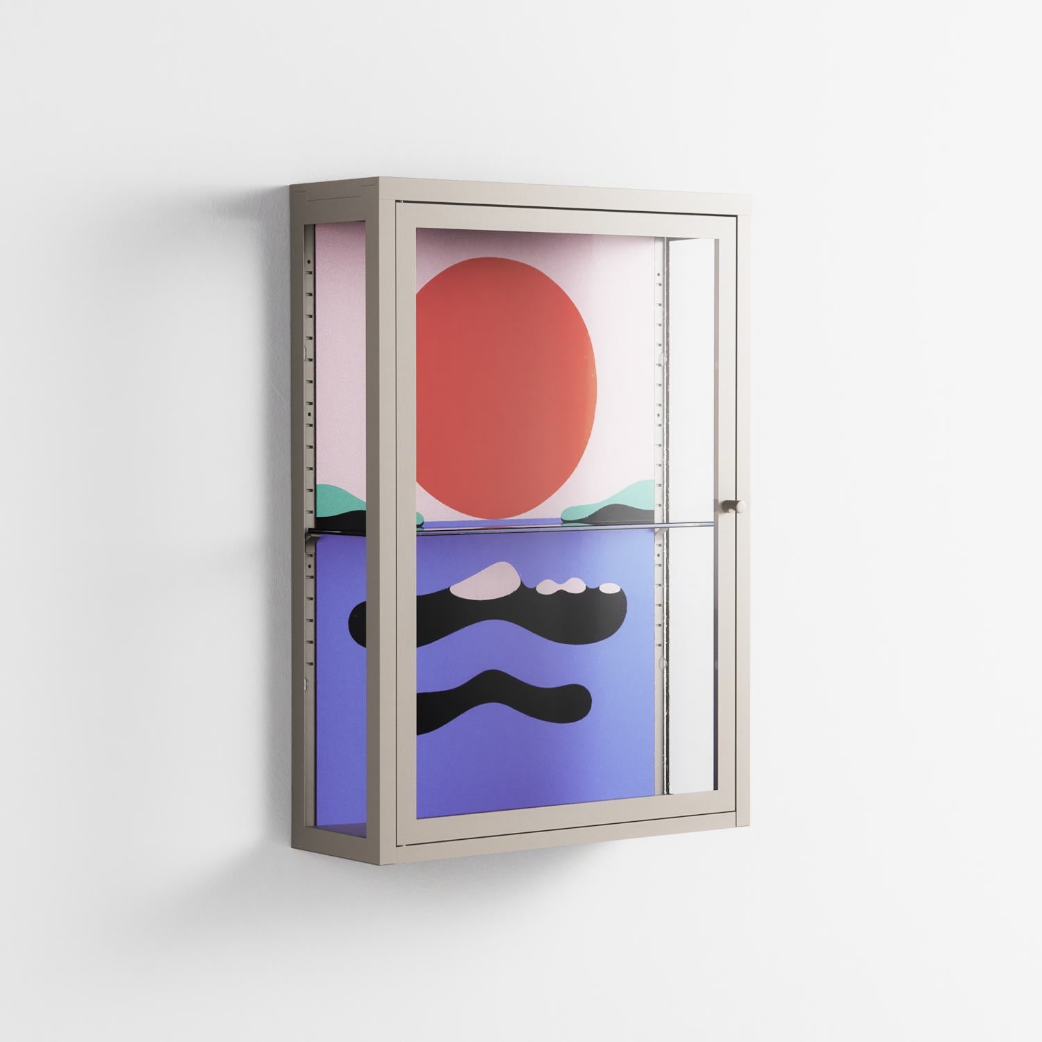 Vitrine pairs artworks by artists, designers, and creatives from around the world with a frame that elevates and displays them in everyday space. The cabinet is built from precision-cut metal with a powder-coated finish — resistant to wear and crafted for stability — making it ideal for both office and home spaces.