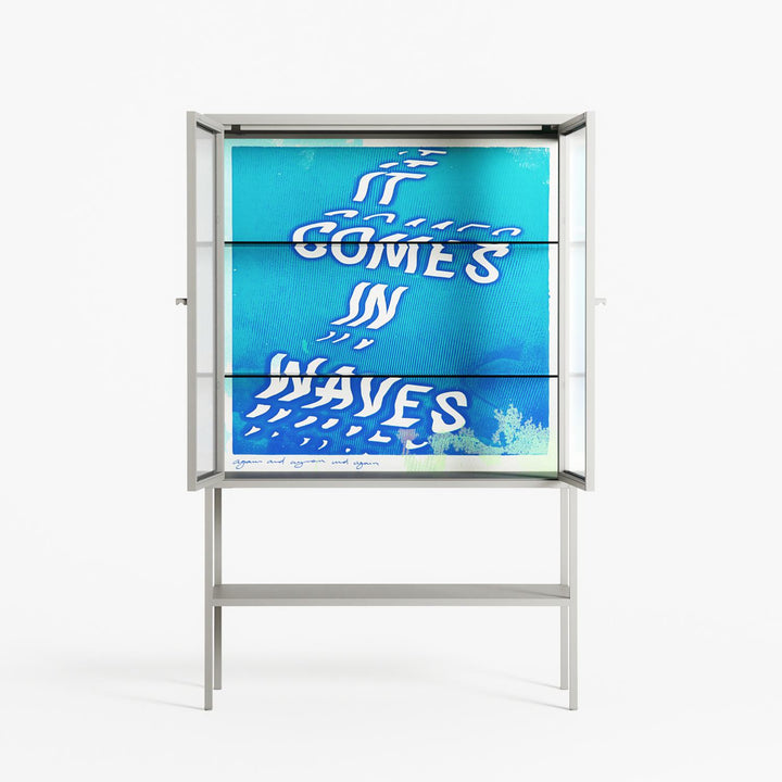 Vitrine pairs artworks by artists, designers, and creatives from around the world with a frame that elevates and displays them in everyday space. The cabinet is built from precision-cut metal with a powder-coated finish — resistant to wear and crafted for stability — making it ideal for both office and home spaces.