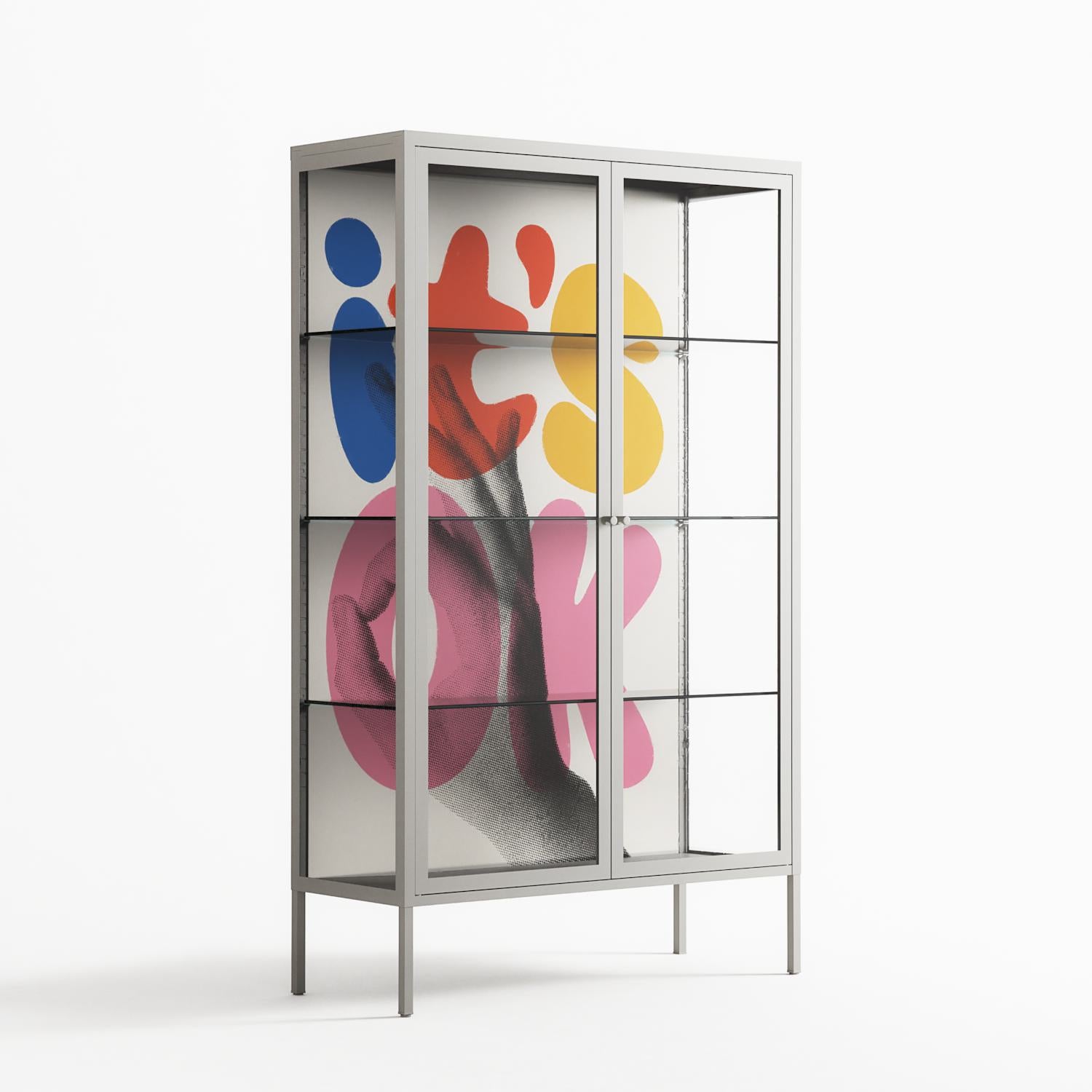 Vitrine pairs artworks by artists, designers, and creatives from around the world with a frame that elevates and displays them in everyday space. The cabinet is built from precision-cut metal with a powder-coated finish — resistant to wear and crafted for stability — making it ideal for both office and home spaces.