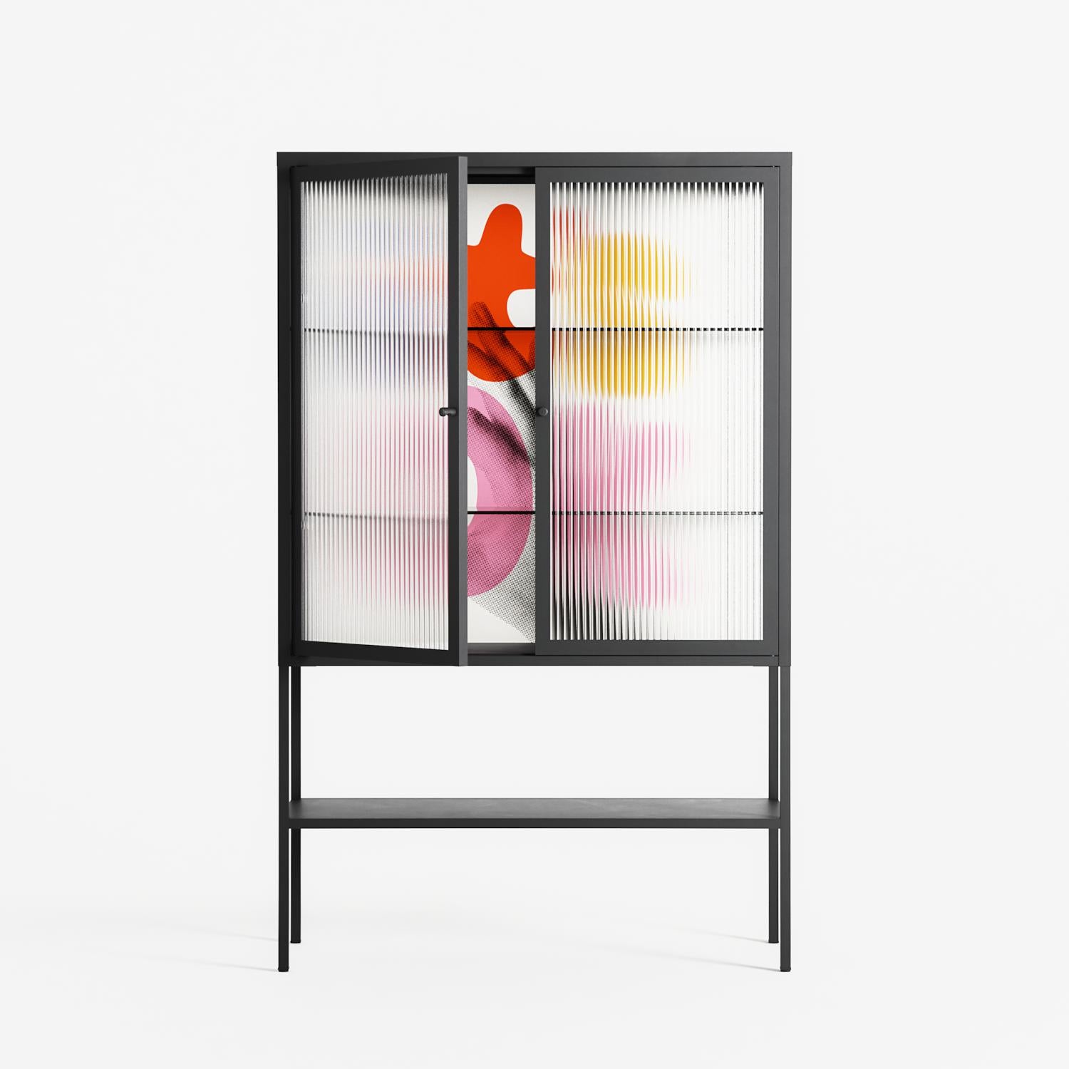 Vitrine pairs artworks by artists, designers, and creatives from around the world with a frame that elevates and displays them in everyday space. The cabinet is built from precision-cut metal with a powder-coated finish — resistant to wear and crafted for stability — making it ideal for both office and home spaces.