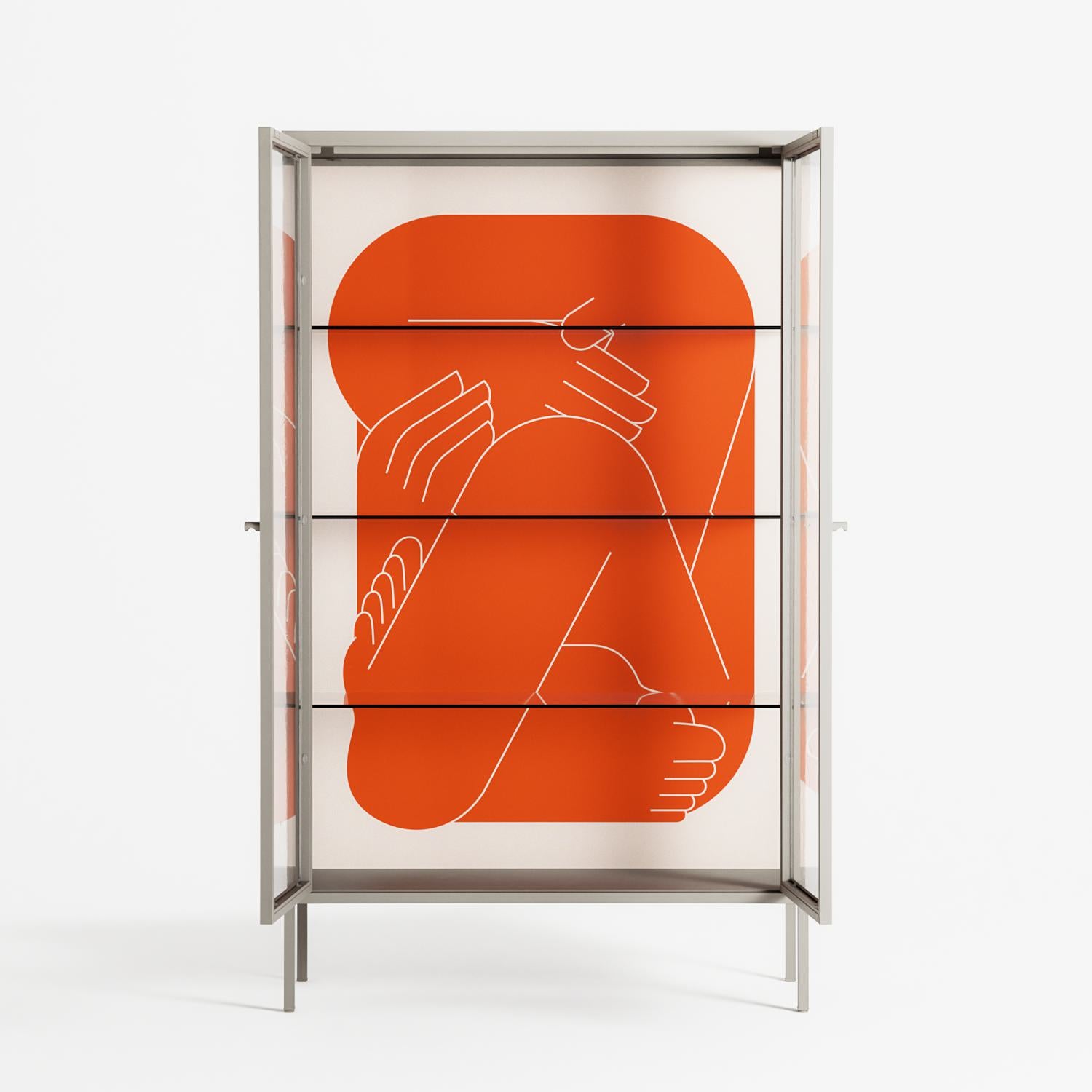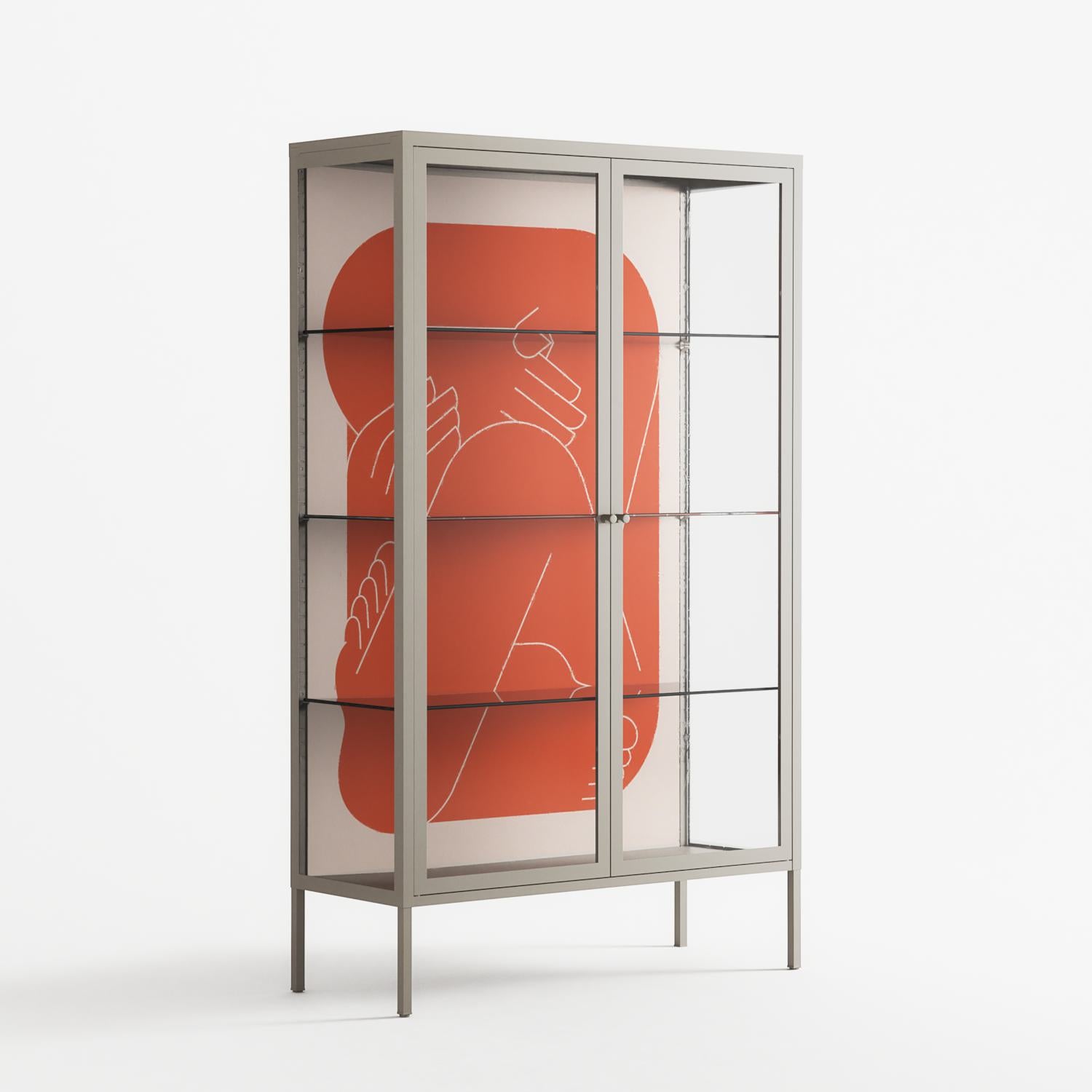 Vitrine pairs artworks by artists, designers, and creatives from around the world with a frame that elevates and displays them in everyday space. The cabinet is built from precision-cut metal with a powder-coated finish — resistant to wear and crafted for stability — making it ideal for both office and home spaces.