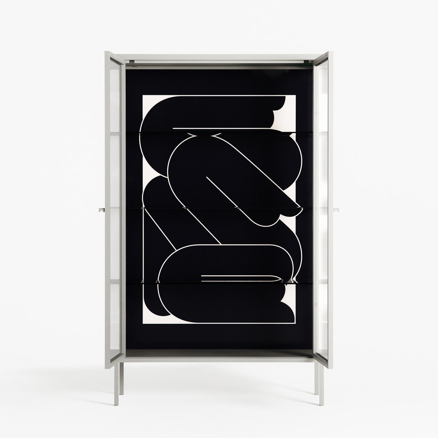 Vitrine pairs artworks by artists, designers, and creatives from around the world with a frame that elevates and displays them in everyday space. The cabinet is built from precision-cut metal with a powder-coated finish — resistant to wear and crafted for stability — making it ideal for both office and home spaces.