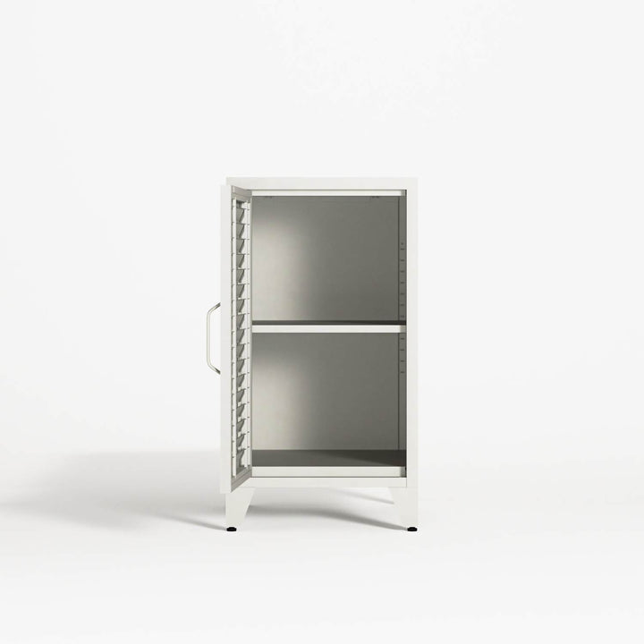 Mandarin cabinets are available in a range of colours and formats. Made entirely from metal with a finish that captures the texture and depth of traditional wood paint, every component is precision-cut and fitted to preserve the soul of traditional wooden cabinetry — reimagined through industrial craftsmanship.