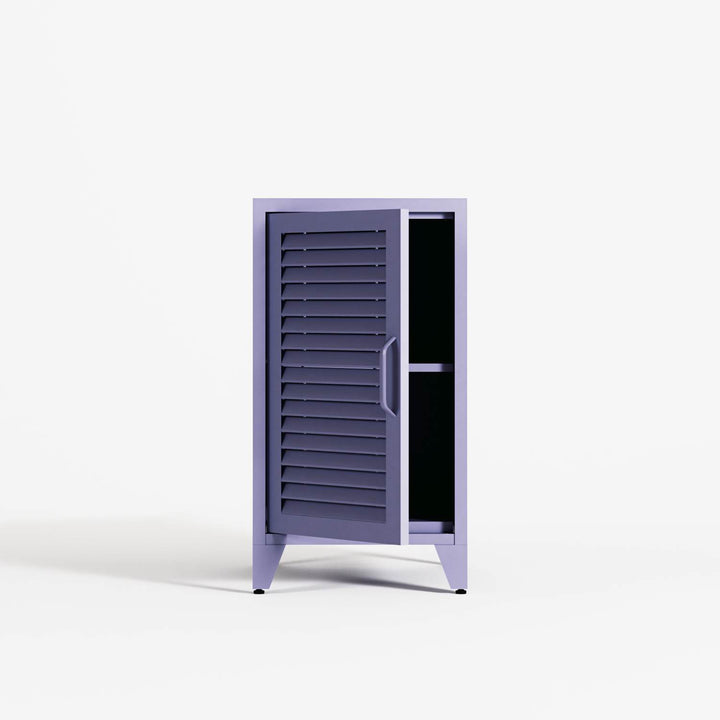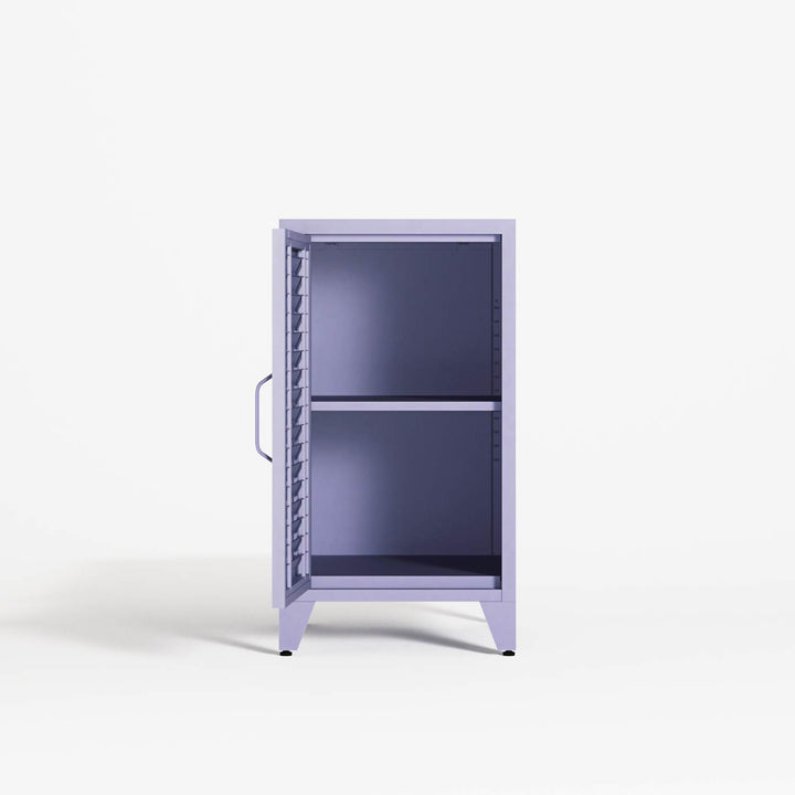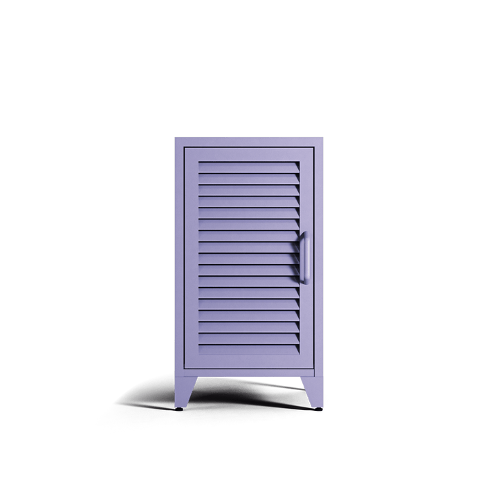 Mandarin, bedside cabinet, finished in the colour Lilac. A classic silhouette with shuttered doors — reimagined by Workdeco through precise, contemporary manufacturing.