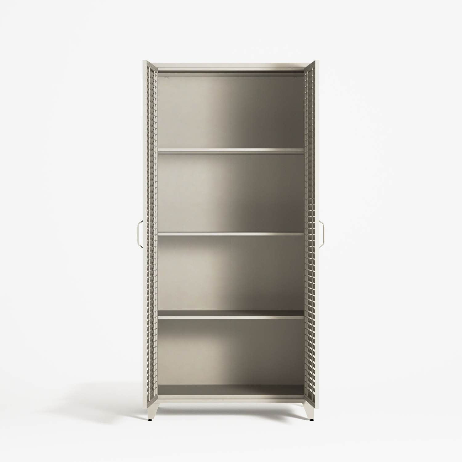 Mandarin cabinets are available in a range of colours and formats. Made entirely from metal with a finish that captures the texture and depth of traditional wood paint, every component is precision-cut and fitted to preserve the soul of traditional wooden cabinetry — reimagined through industrial craftsmanship.