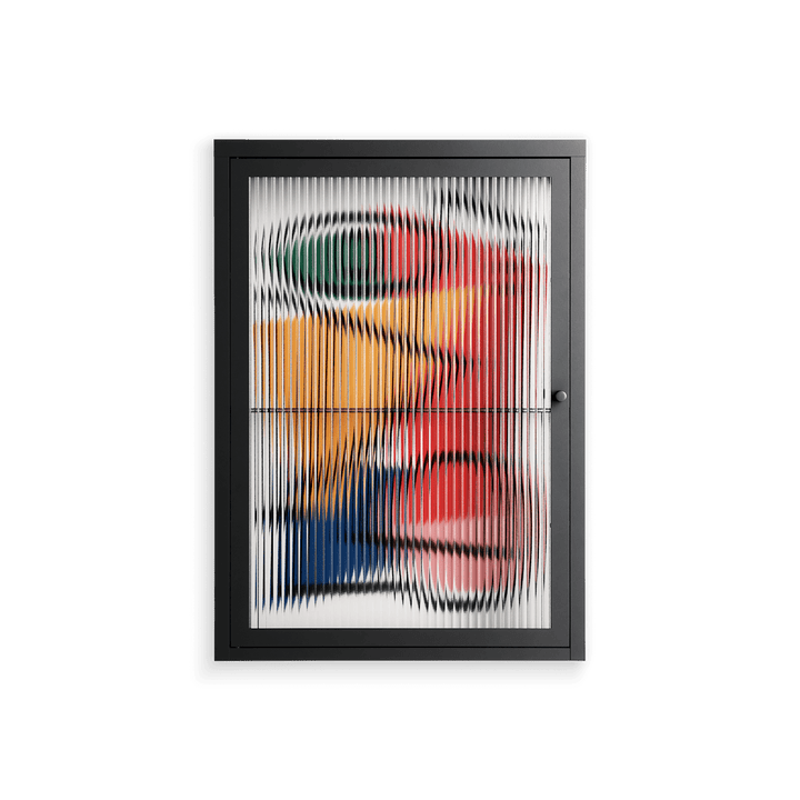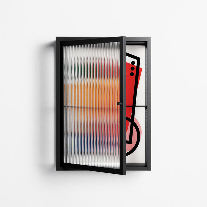 Vitrine pairs artworks by artists, designers, and creatives from around the world with a frame that elevates and displays them in everyday space. The cabinet is built from precision-cut metal with a powder-coated finish — resistant to wear and crafted for stability — making it ideal for both office and home spaces.