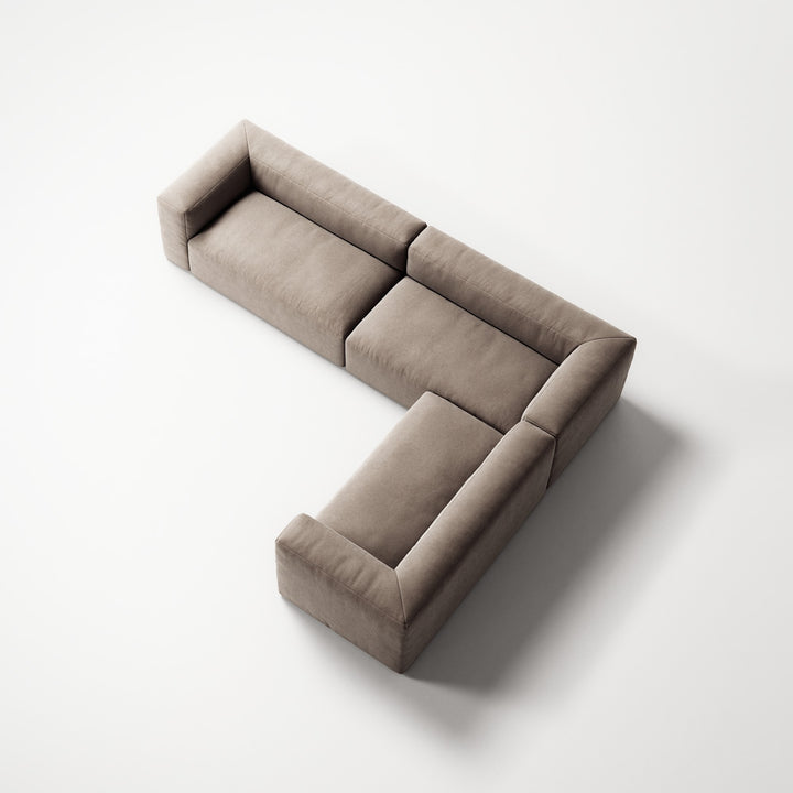 MONOLITH 5-Seat-Corner Right — a familiar form, distilled to its essence. Cubic in character, soft in presence, Monolith captures the sculptural spirit of 1970s Italian design and reinterprets it through considered proportions and contemporary manufacturing.