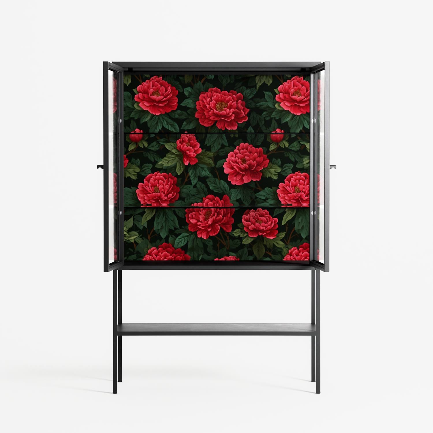 Vitrine pairs artworks by artists, designers, and creatives from around the world with a frame that elevates and displays them in everyday space. The cabinet is built from precision-cut metal with a powder-coated finish — resistant to wear and crafted for stability — making it ideal for both office and home spaces.